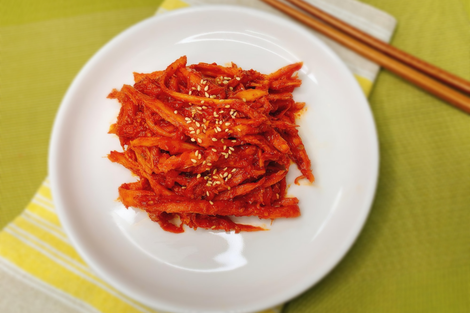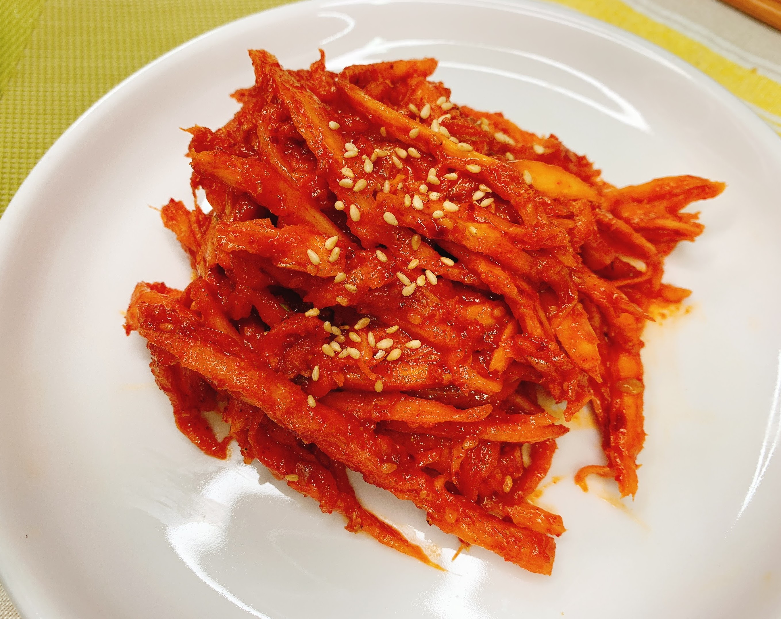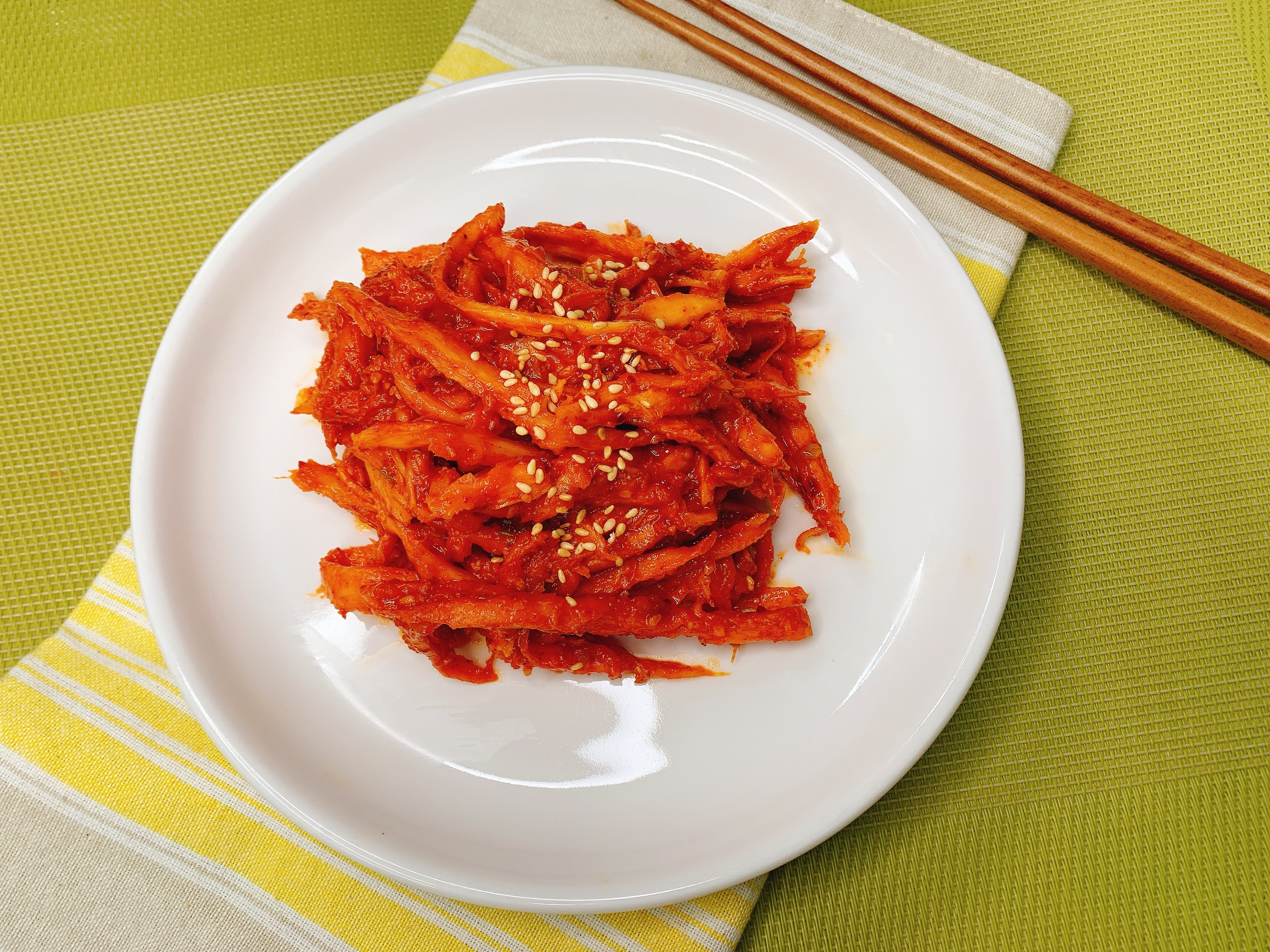 매콤하고 향긋한 더덕무침이 되었어요