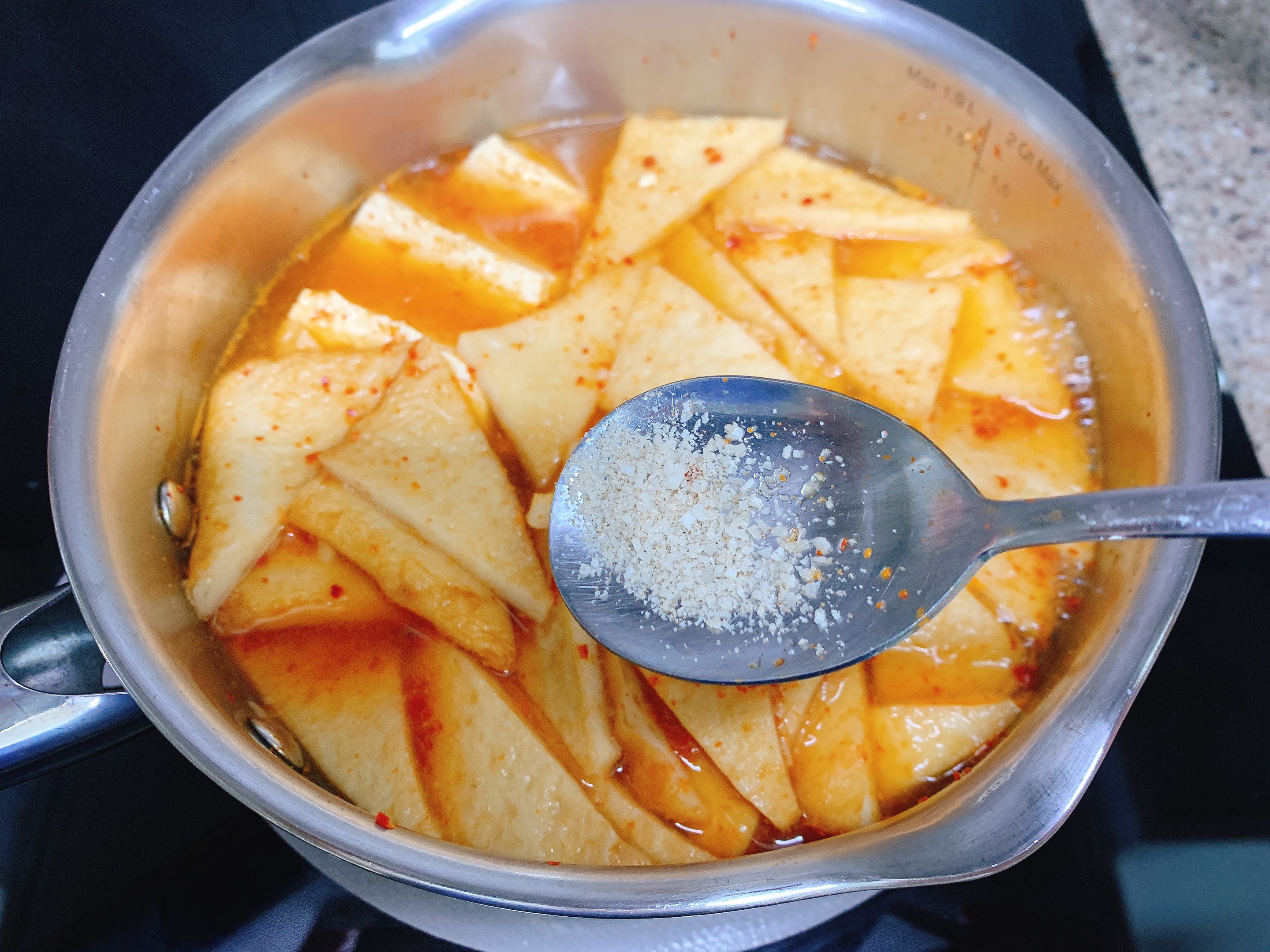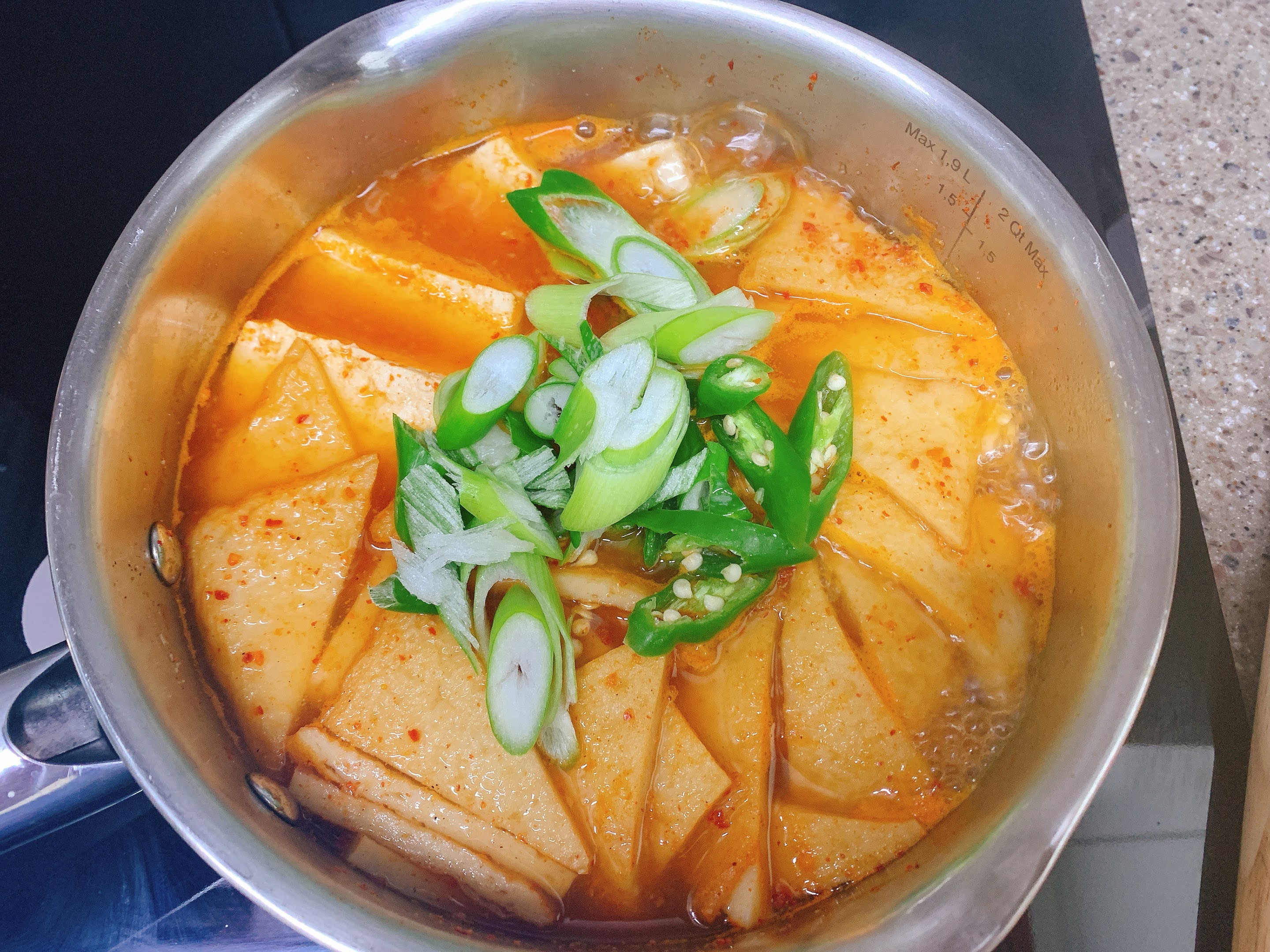 멸치와 다시마를 넣고 15분쯤 끓인 육수와 도톰한 사각어묵~