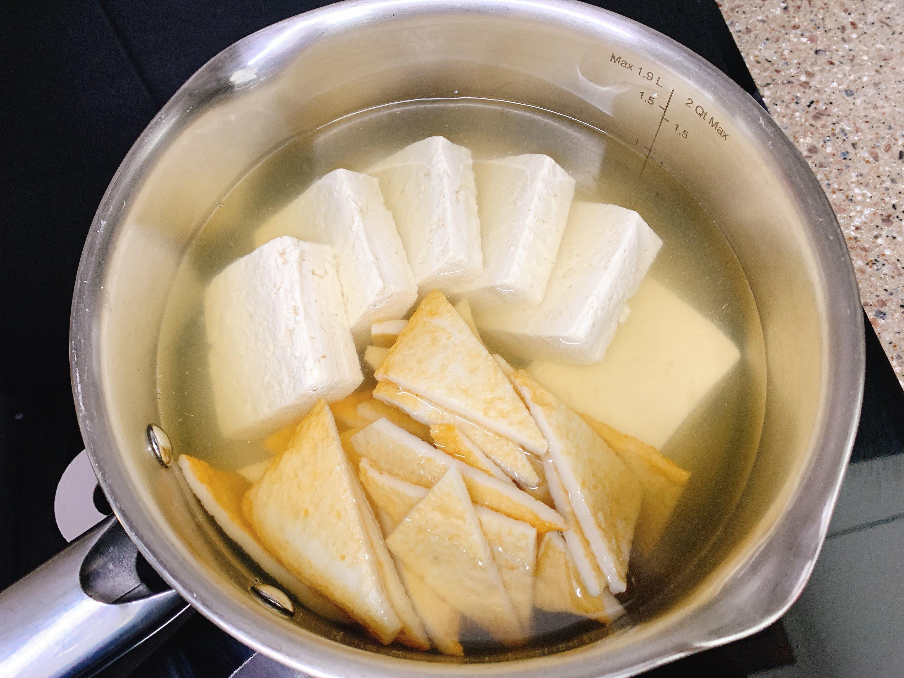 냄비에 두부와 어묵을 담고~ 육수도 600미리정도 붓고,