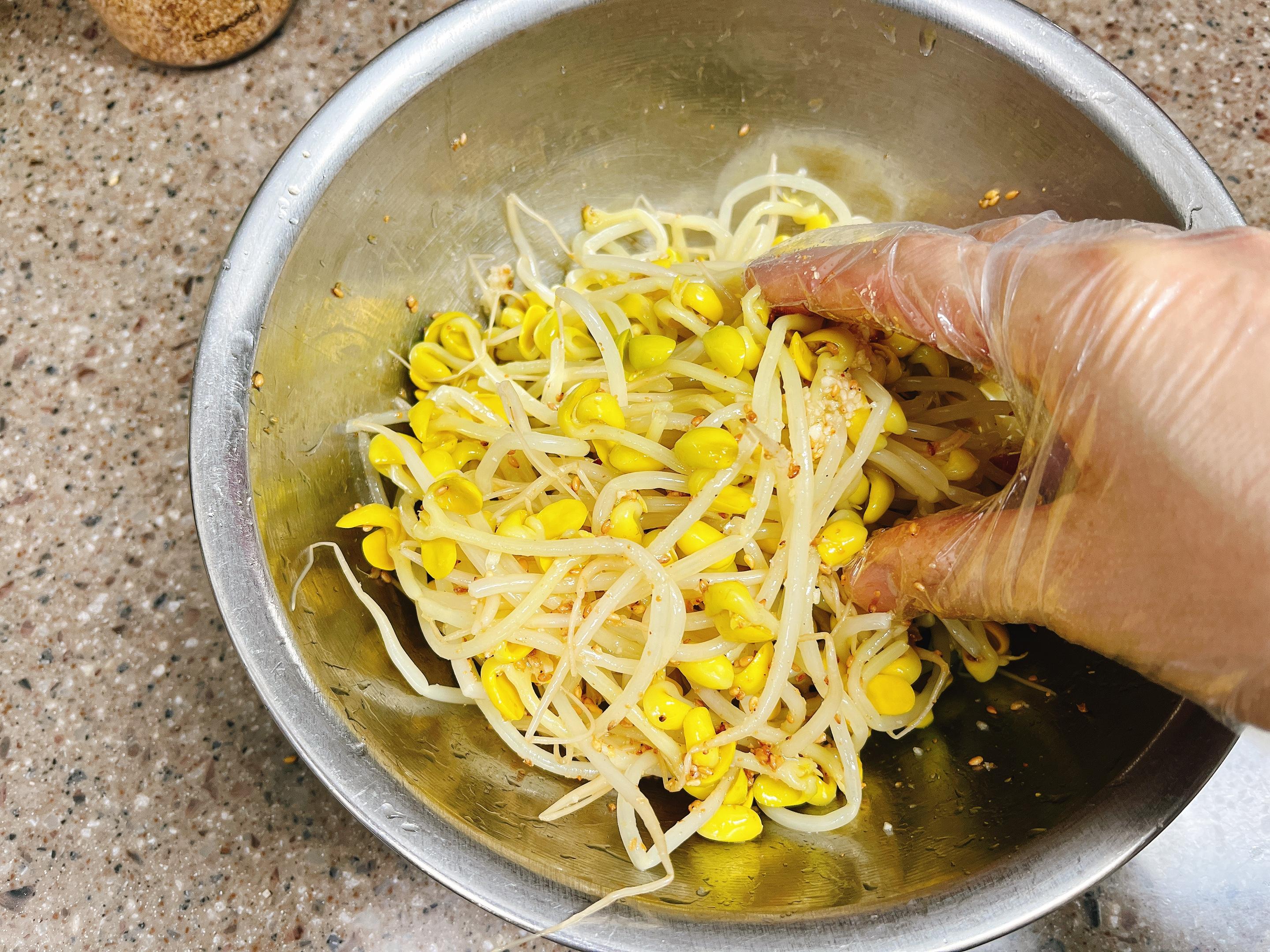 물기빠진 콩나물을 볼에 담고,