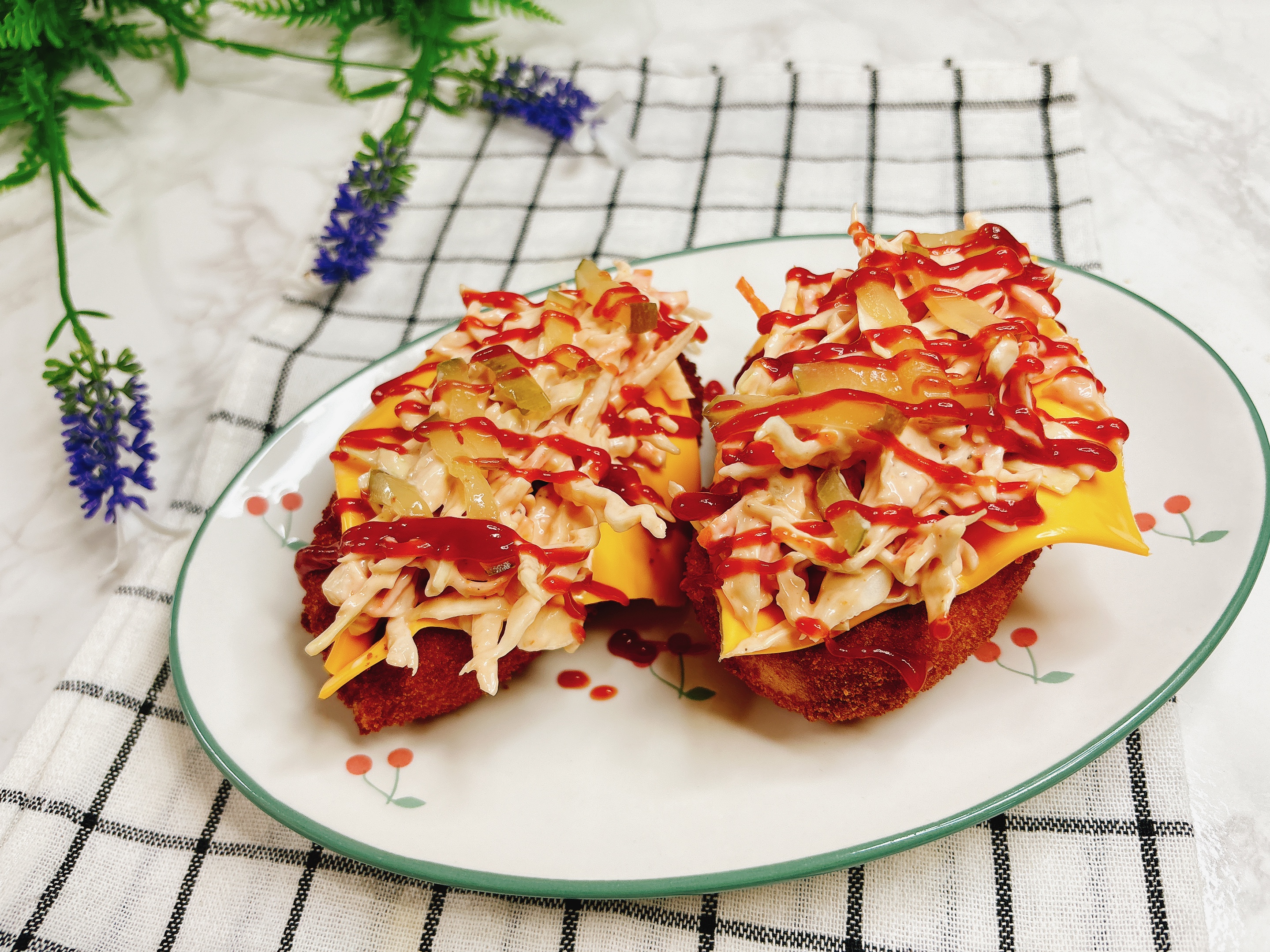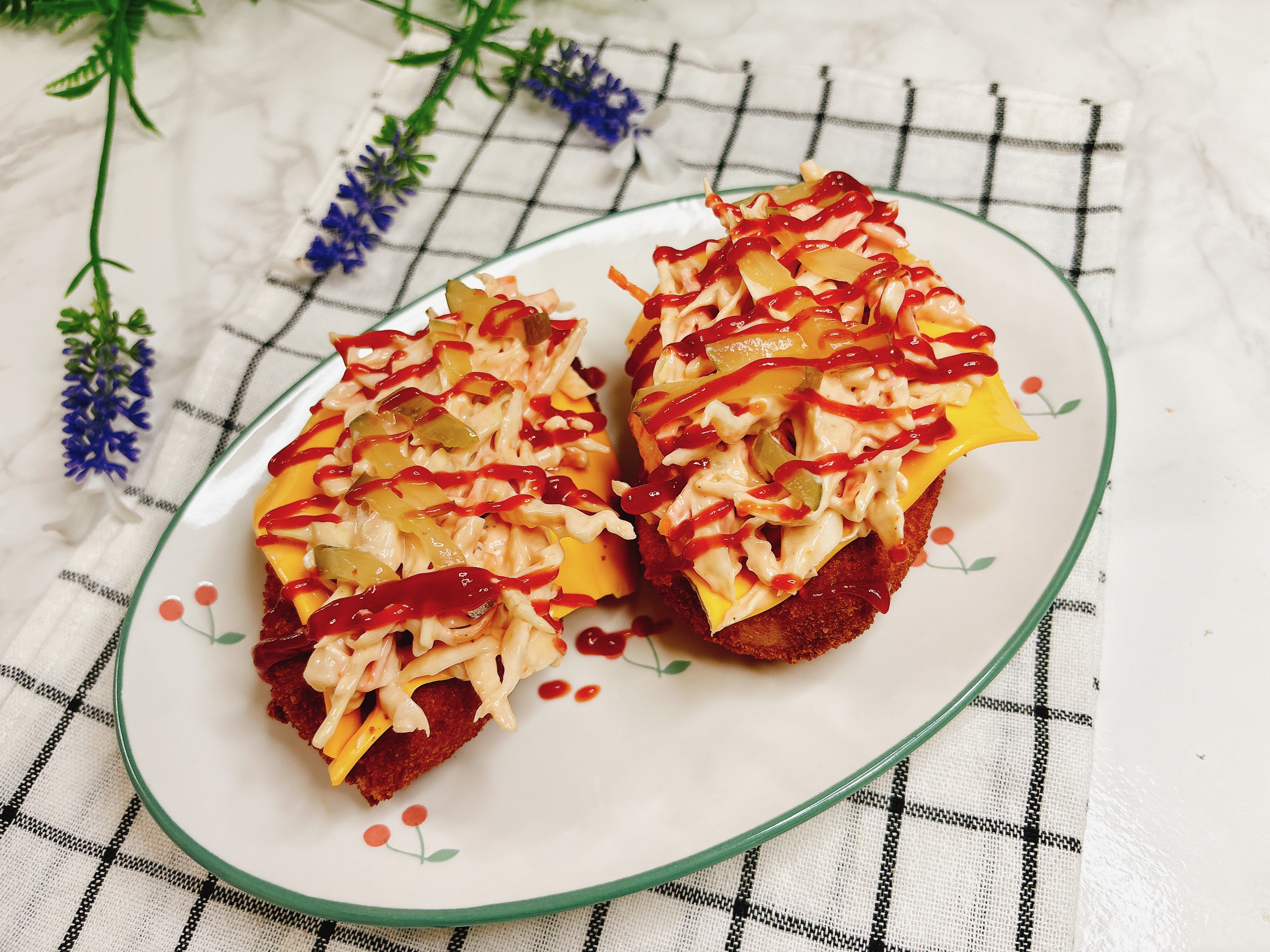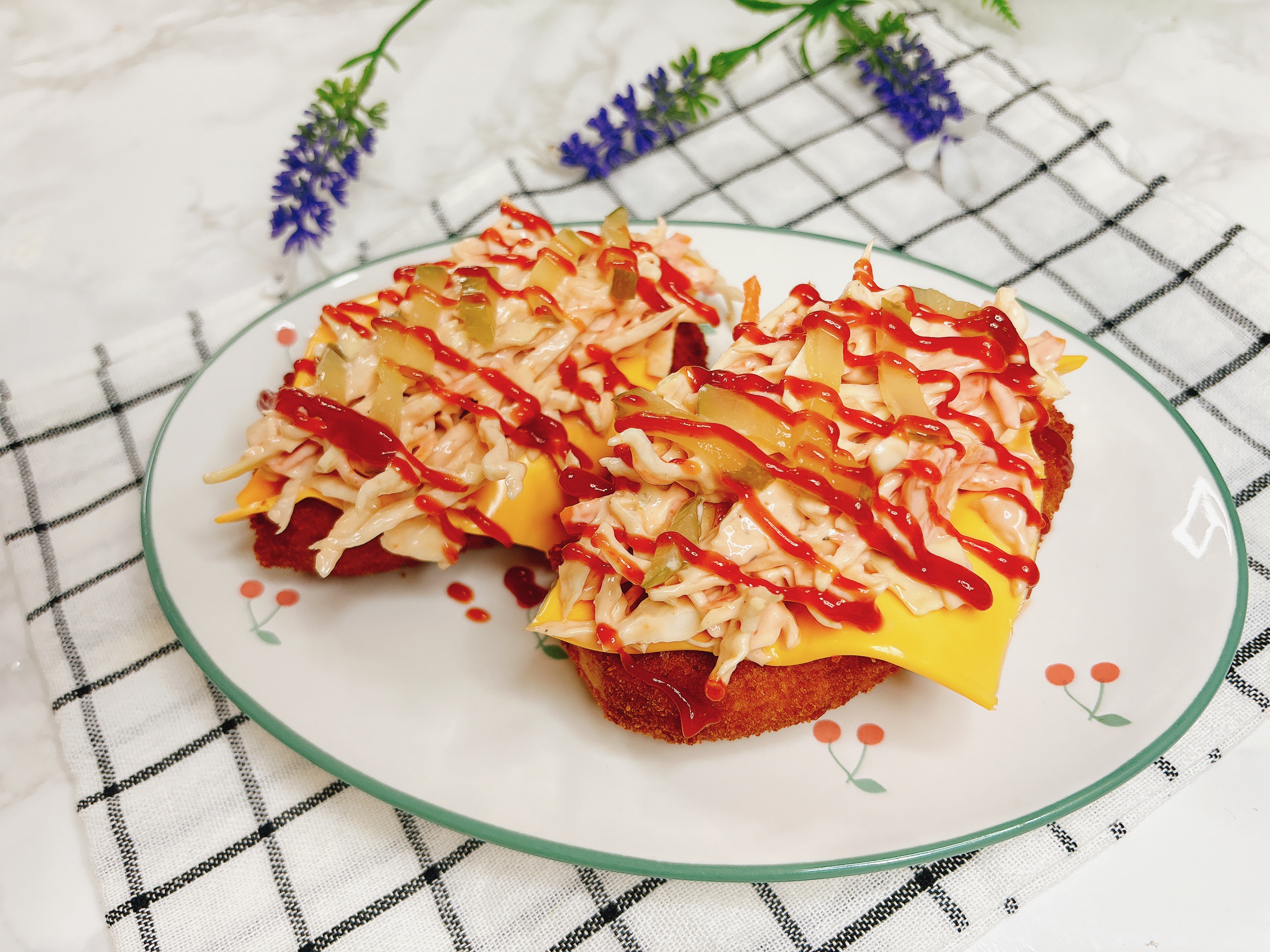 양배추샐러드를 올려 먹으면