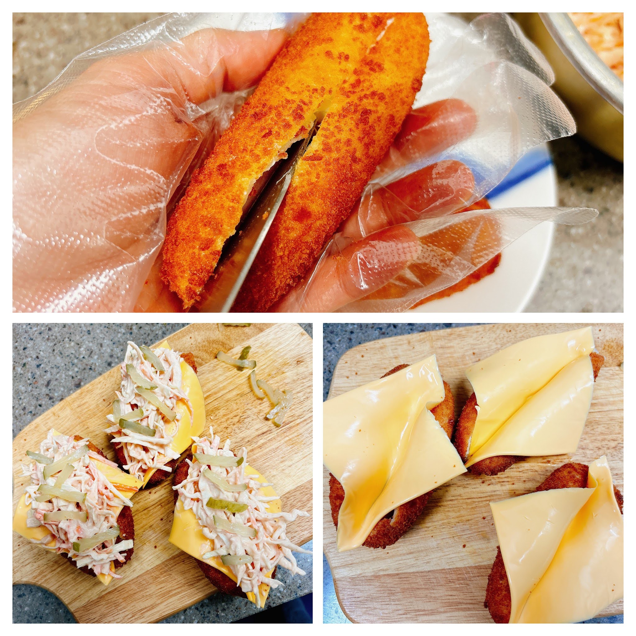 ▶ 양배추샐러드를 핫도그에 올리기