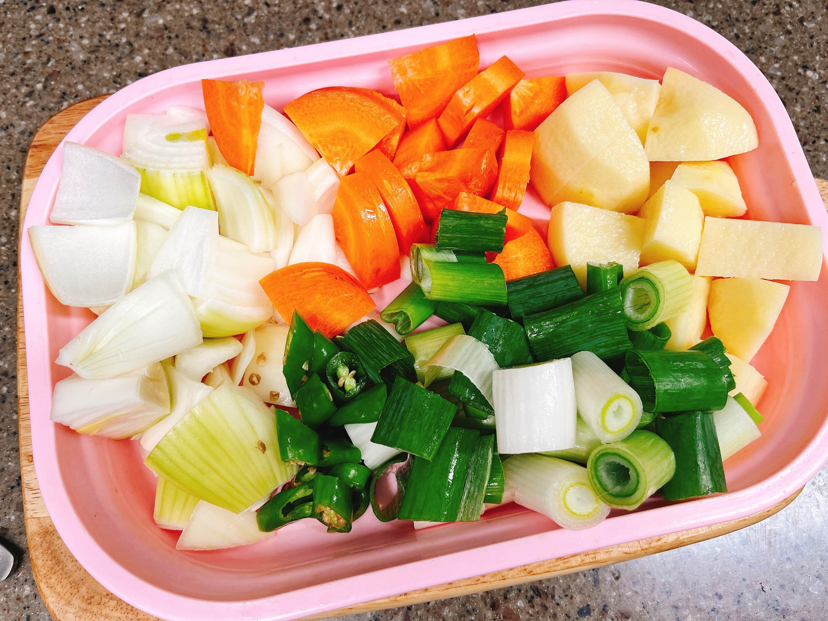 양파, 당근, 대파, 청양고추는 적당히 썰어주었어요