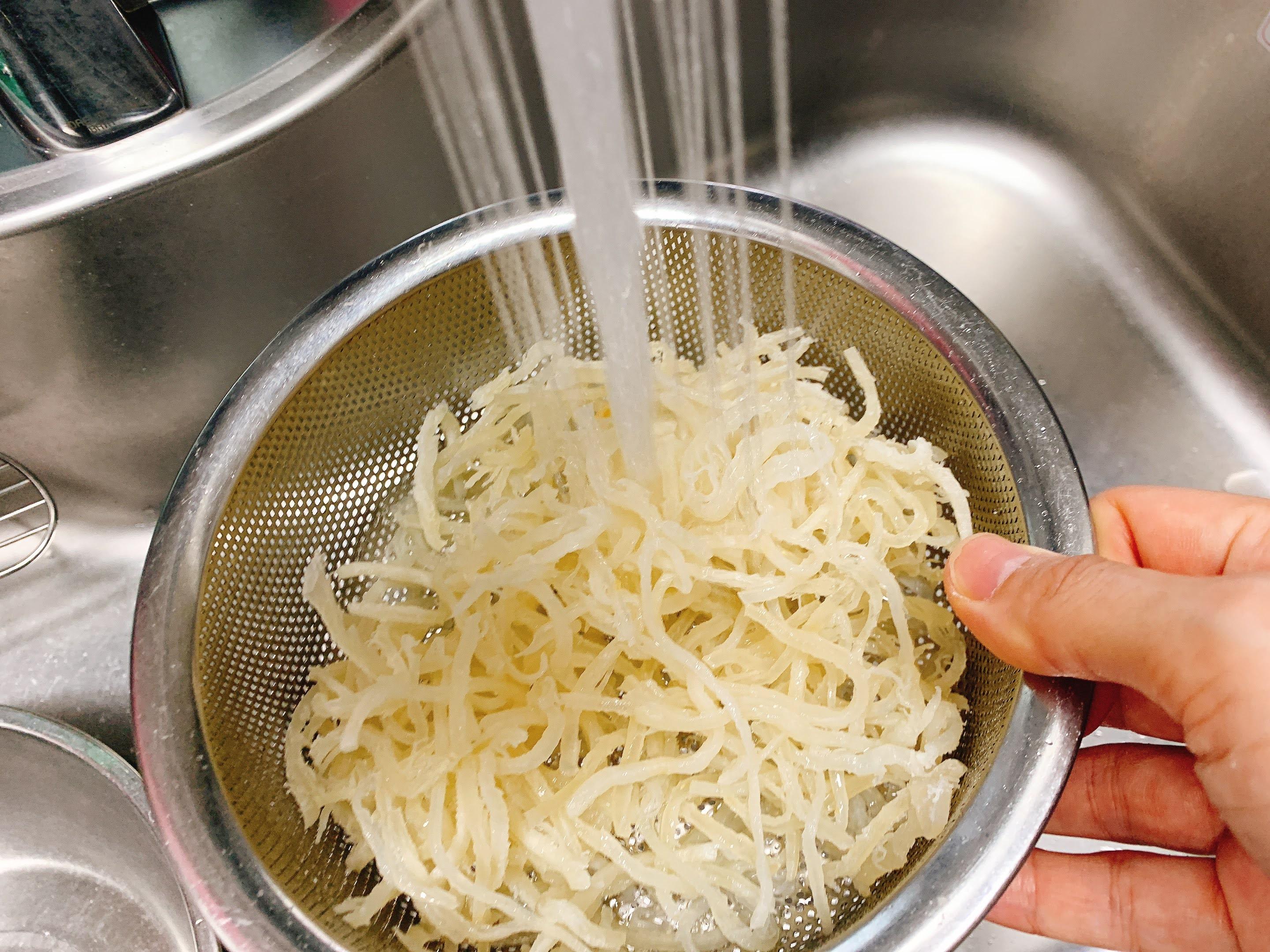 흐르는 물에 가볍게 헹궈내서 조미된 양념도 줄이고,