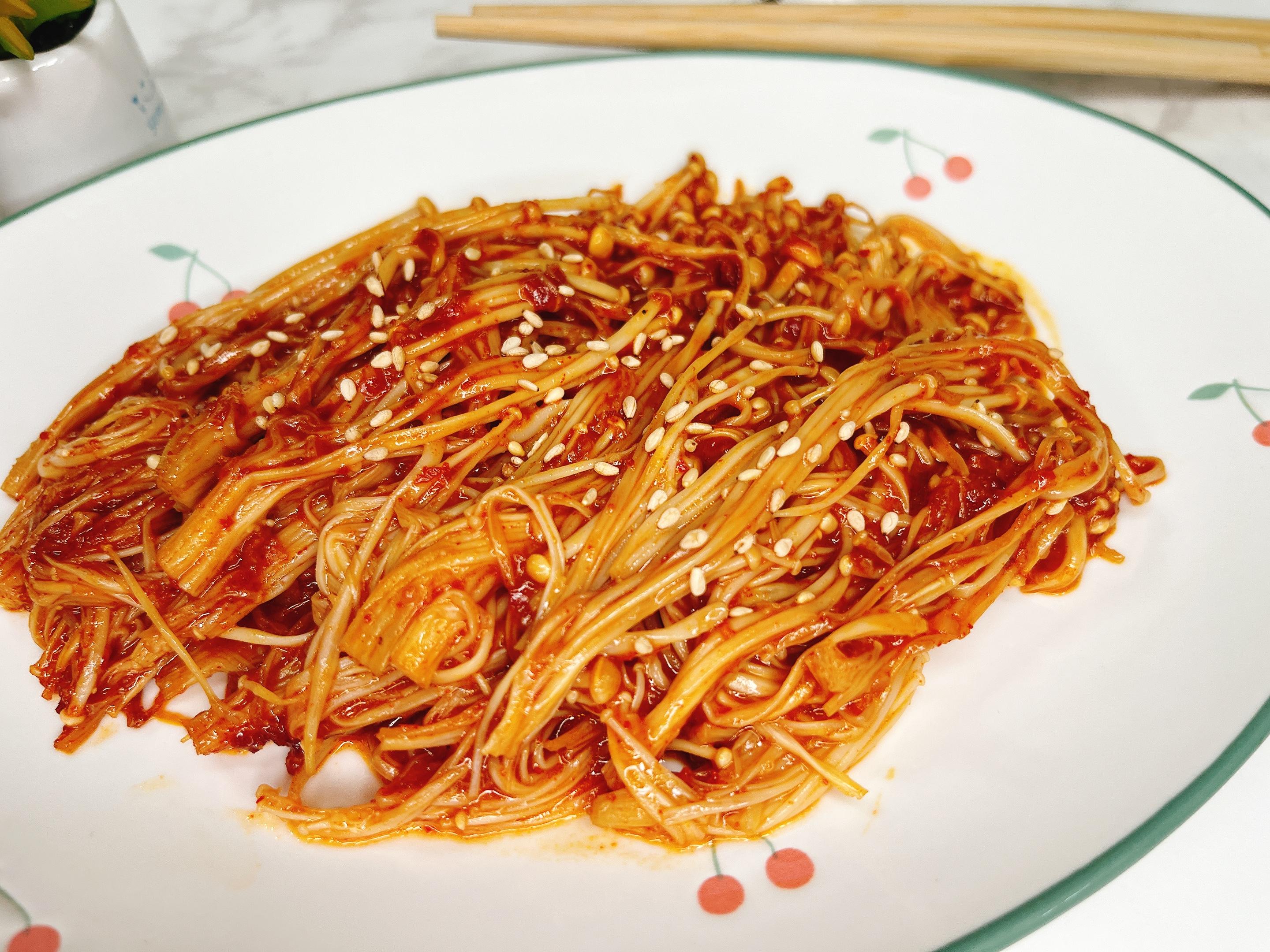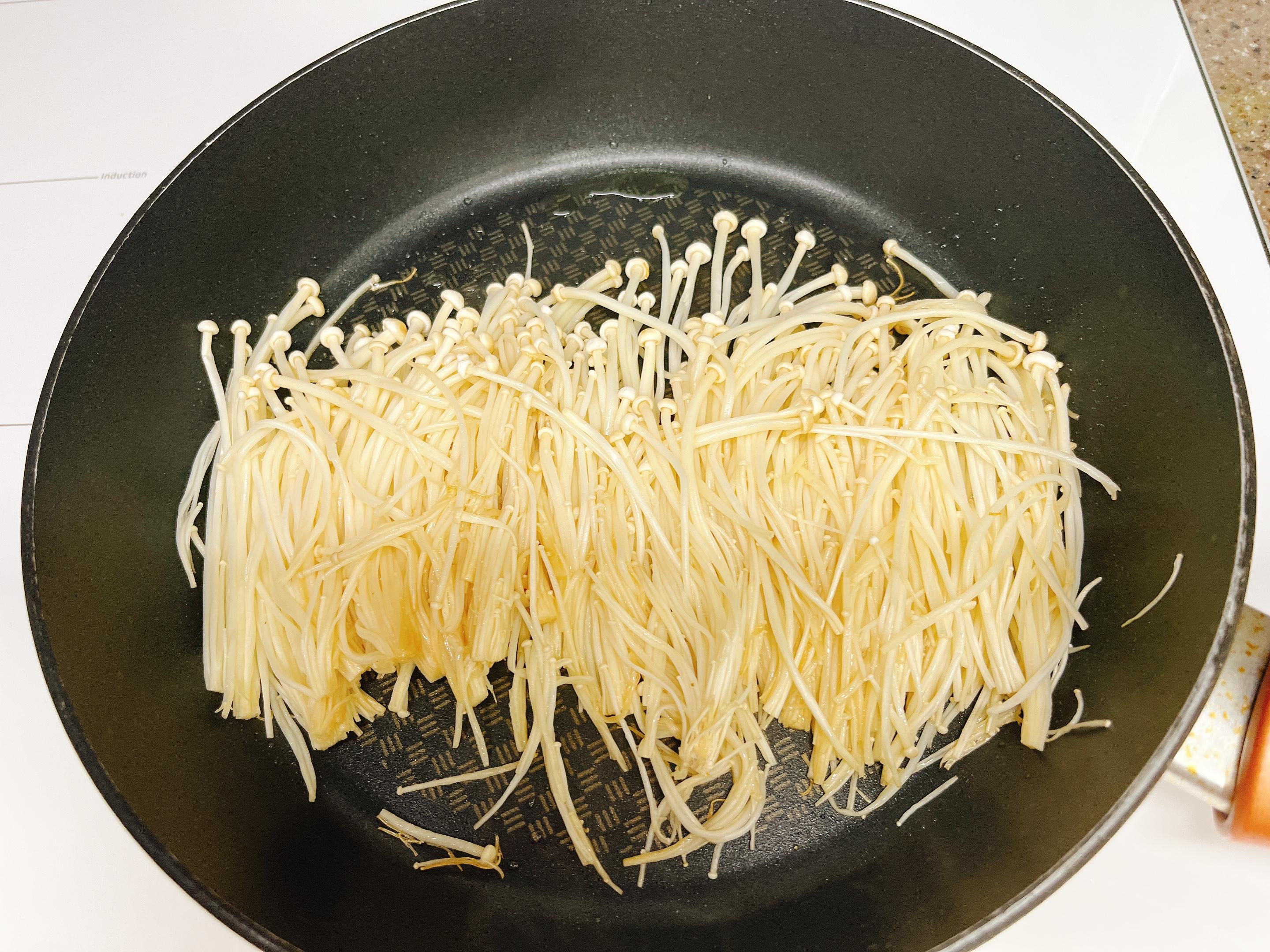 팽이버섯을 앞뒤로 뒤집어 구워요