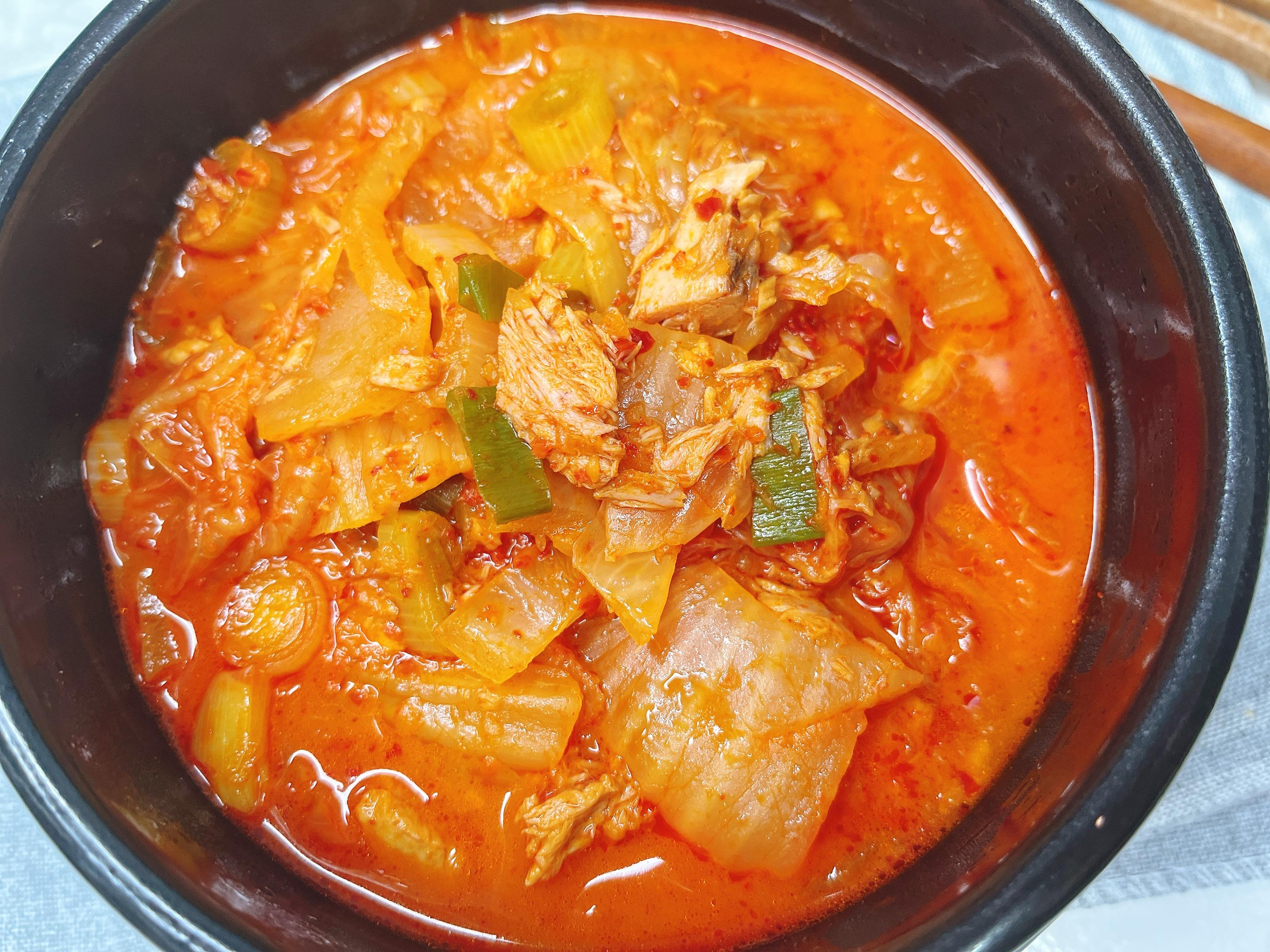 돼지고기나 스팸, 또는 참치를 넣고 끓이는게