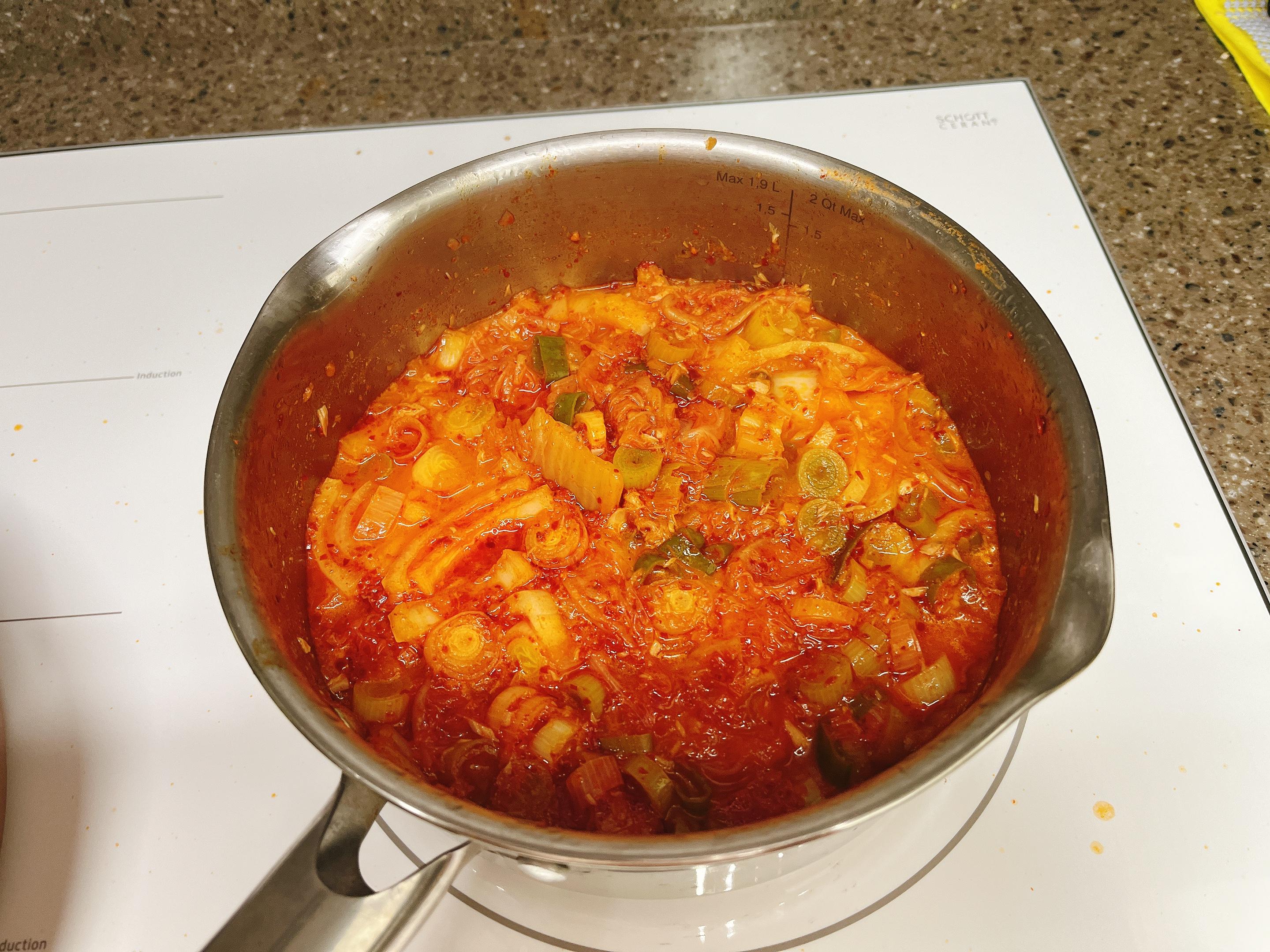 쌀밥에 뜨거운 김치찌개 비벼먹으면~
