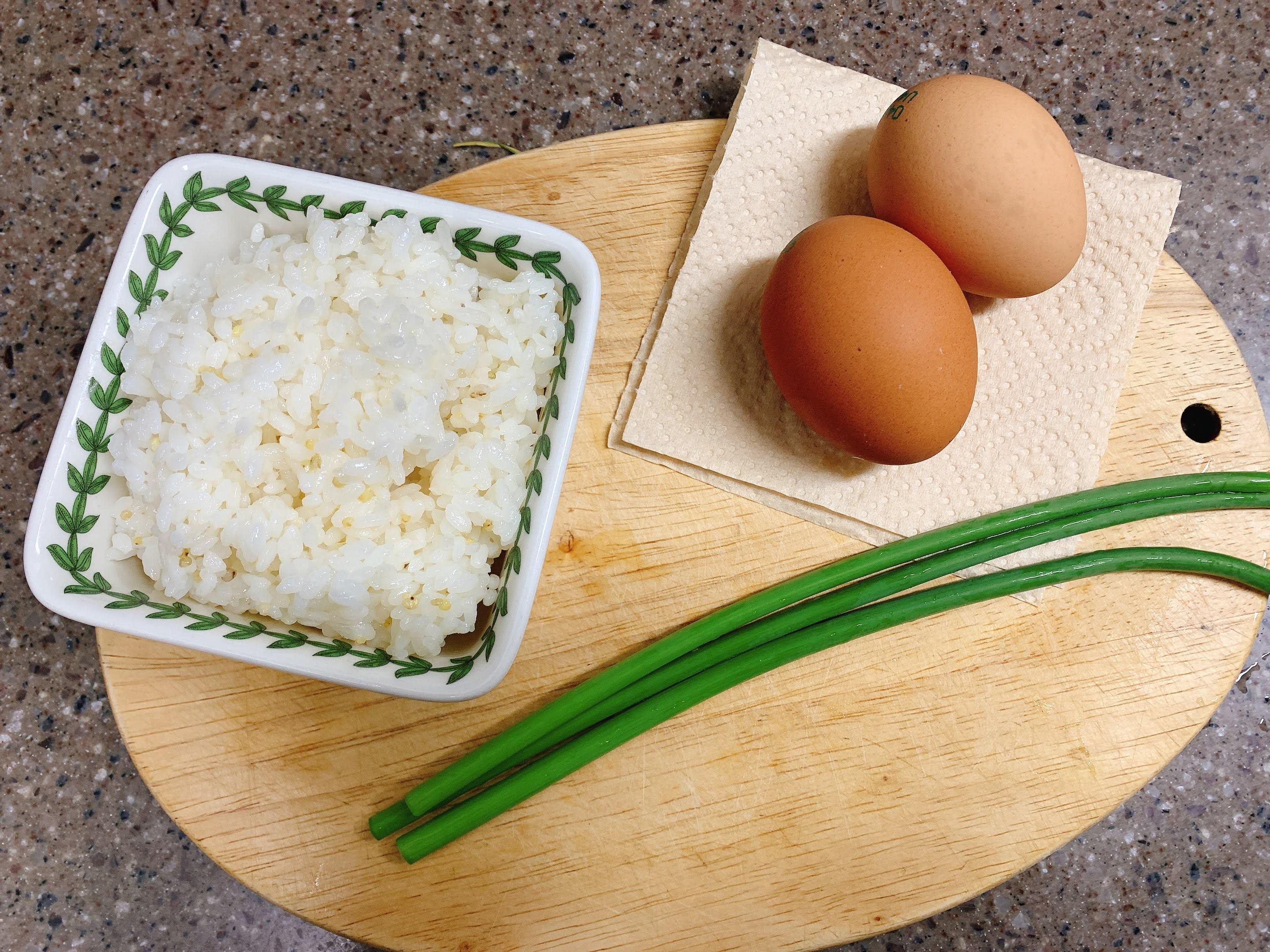 찬밥, 계란 그리고 마늘종을 준비했어요