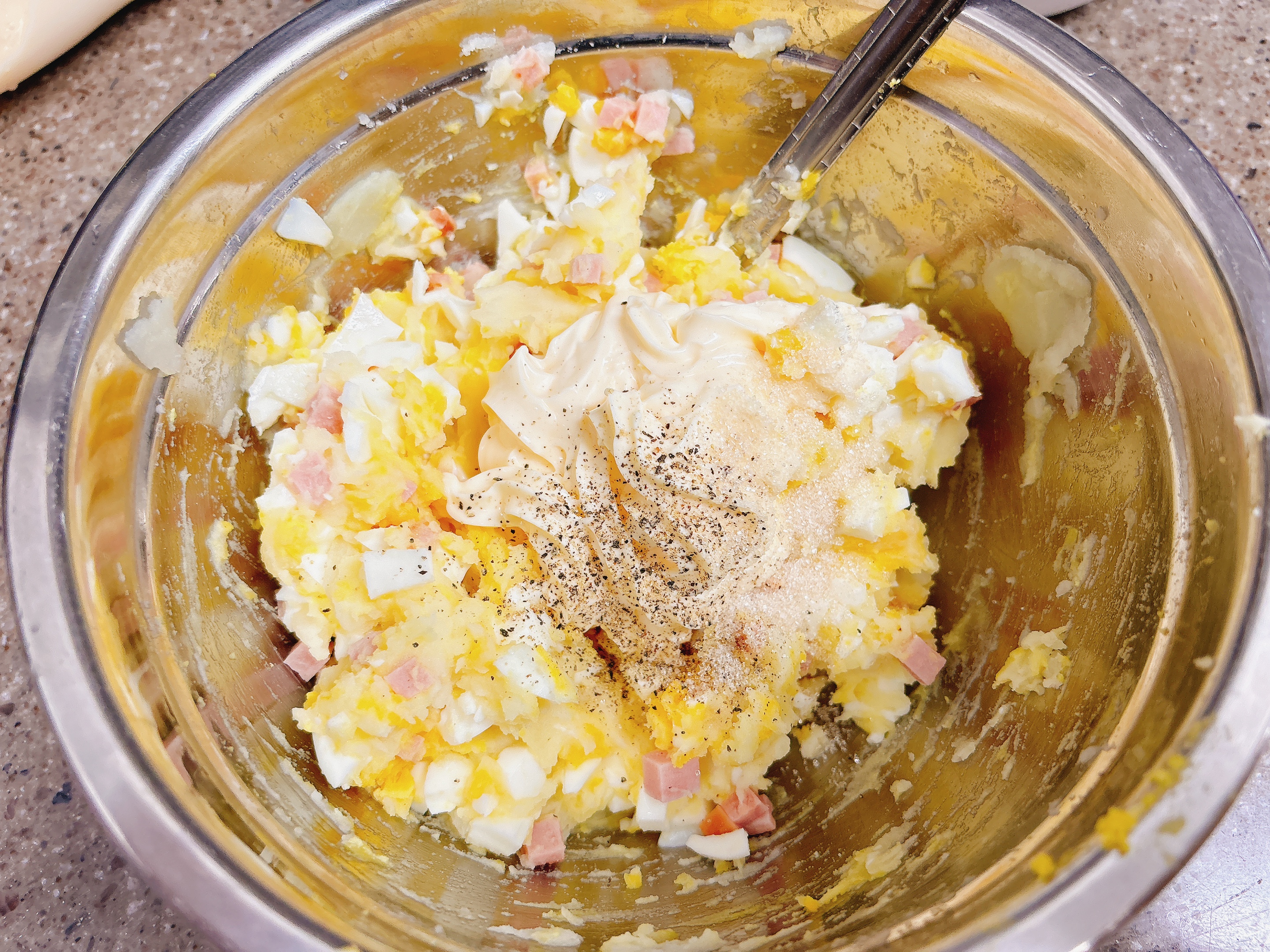 ▶ 마요네즈, 설탕, 후추가루 더하기