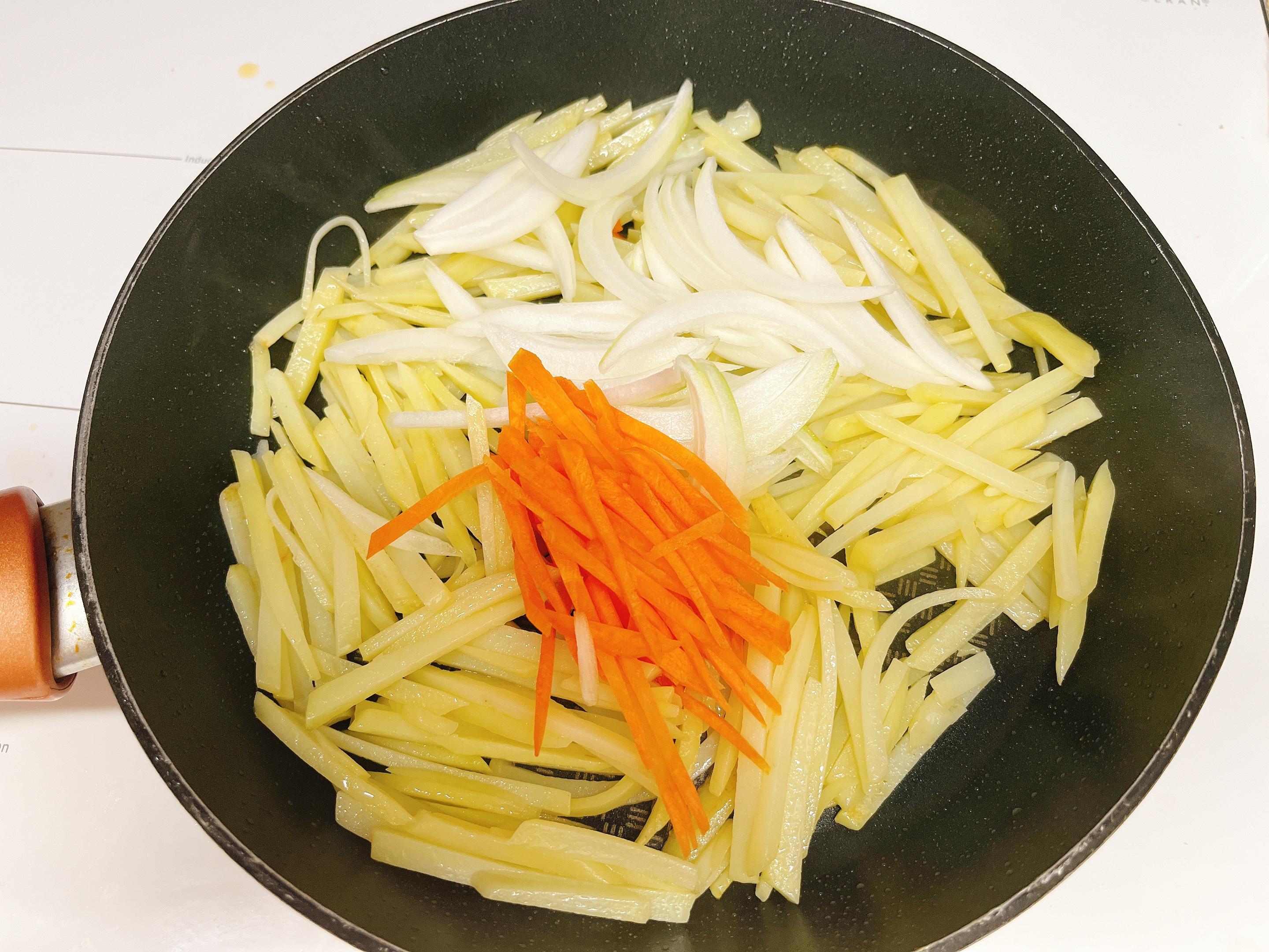 양파와 당근을 넣고 함께 볶아요