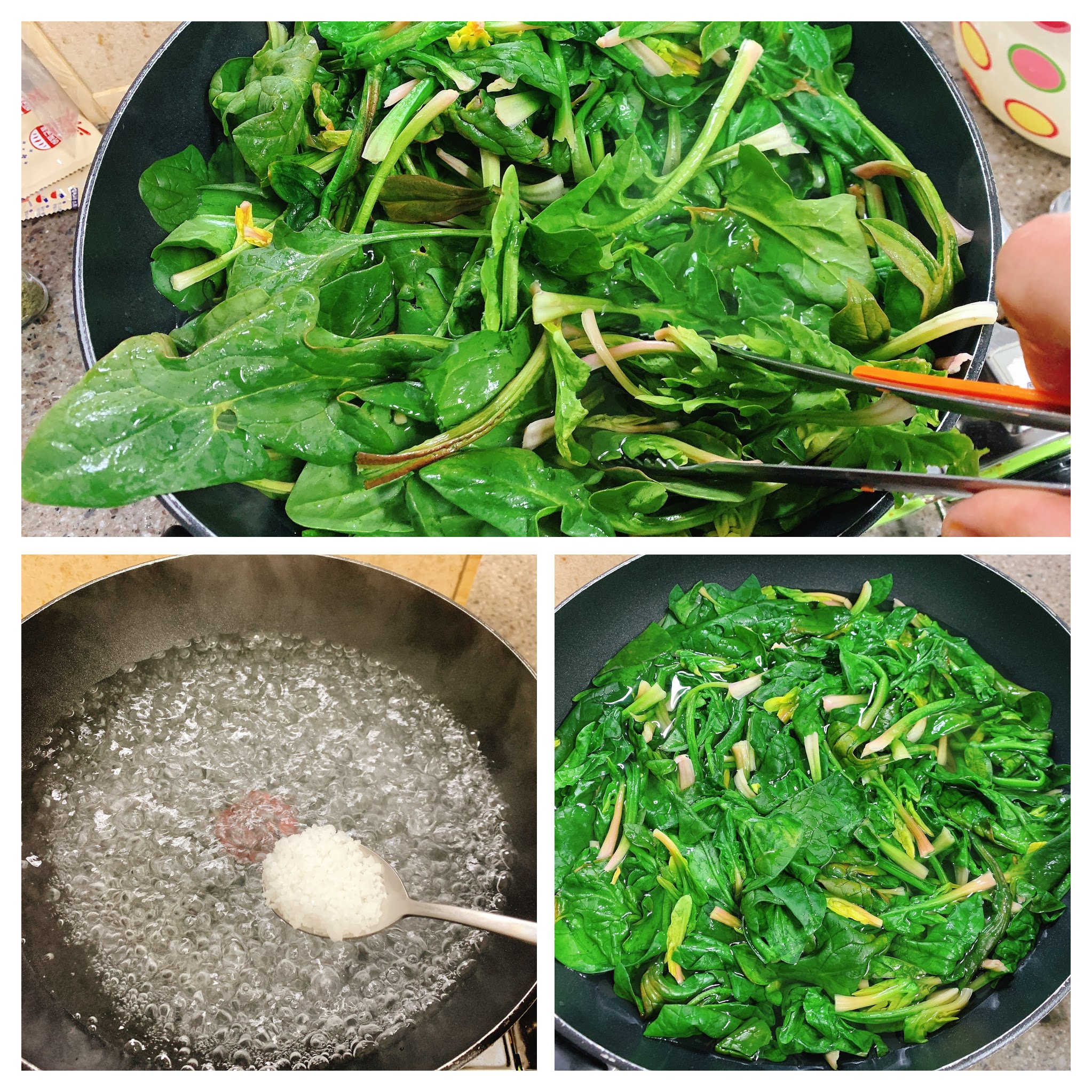 시금치 데치는 것만 잘 되어도 기본이상은 되지요