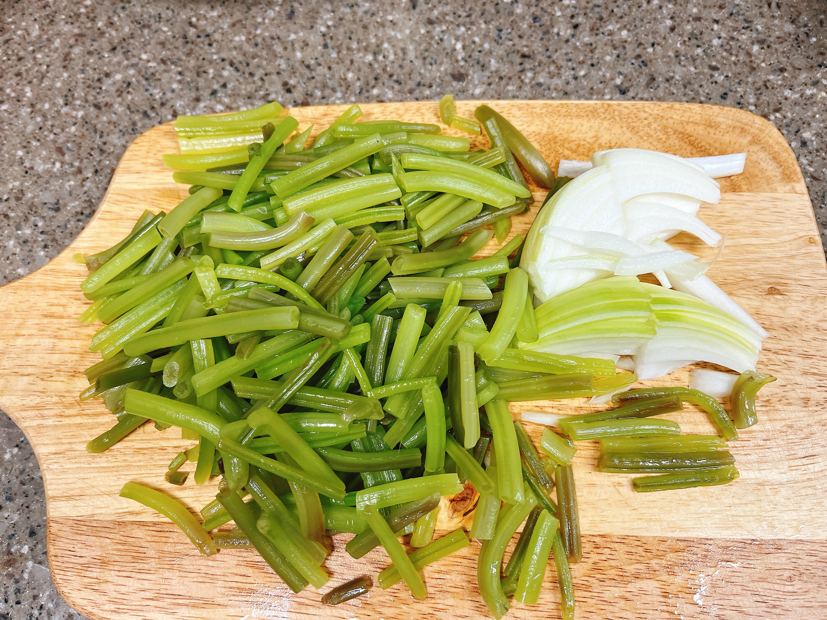 양파도 고구마줄기와 비슷한 길이로 채썰어요