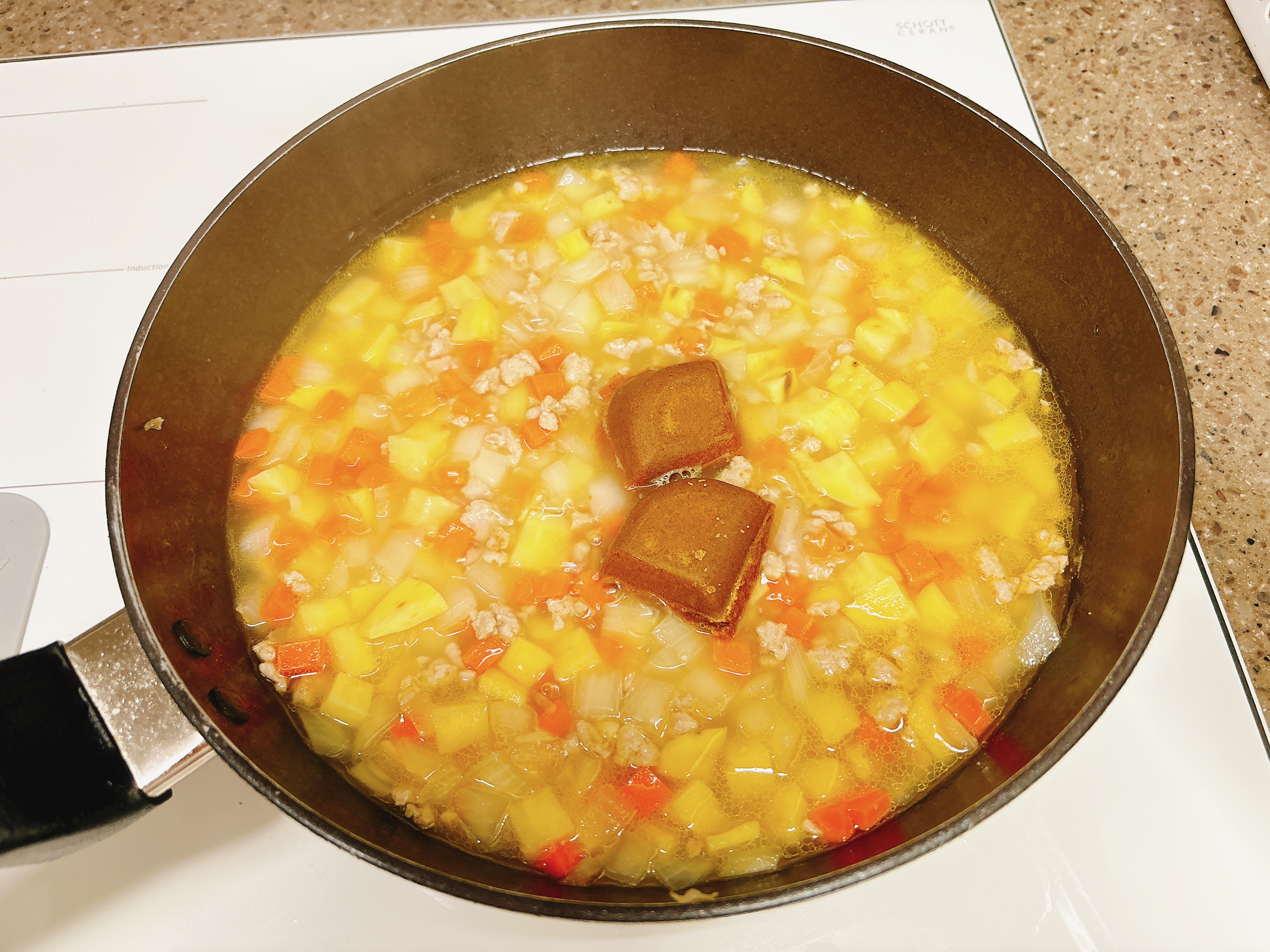 고형카레를 풀어가며 끓였는데