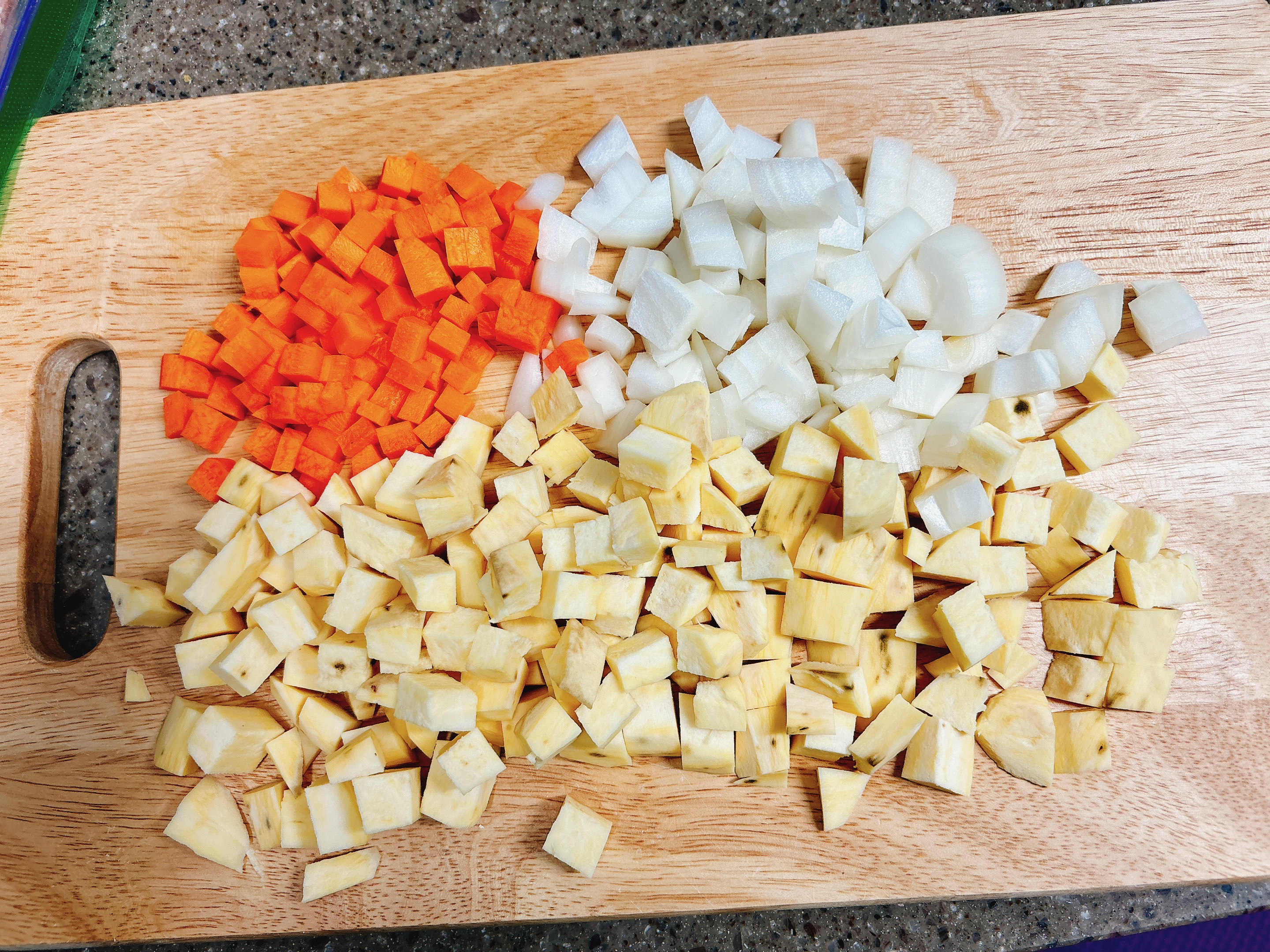 고구마, 당근은 사방 1센티 정도의