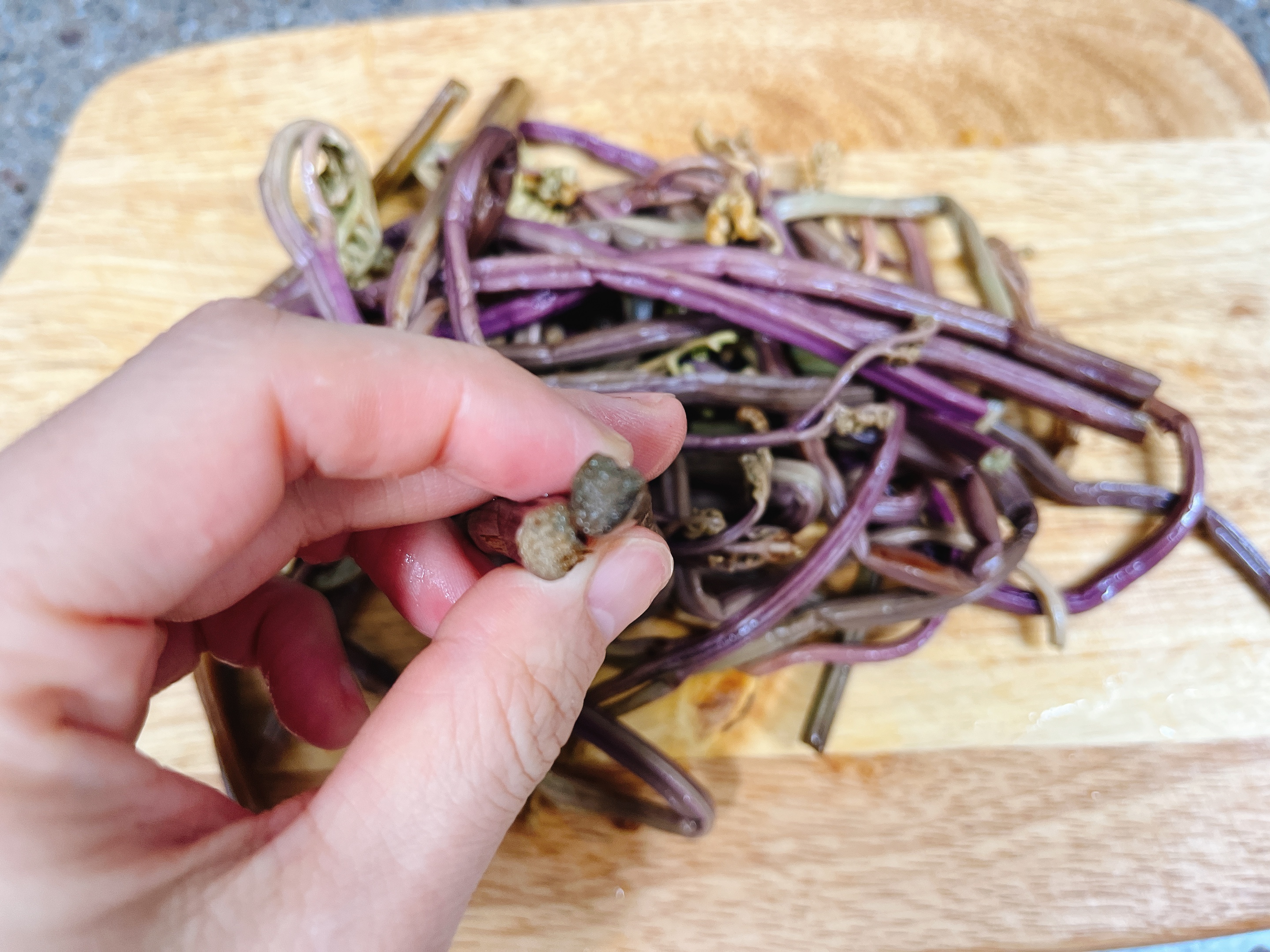 먹기 좋게 자르기 전에 고사리끝 단면을 확인해서