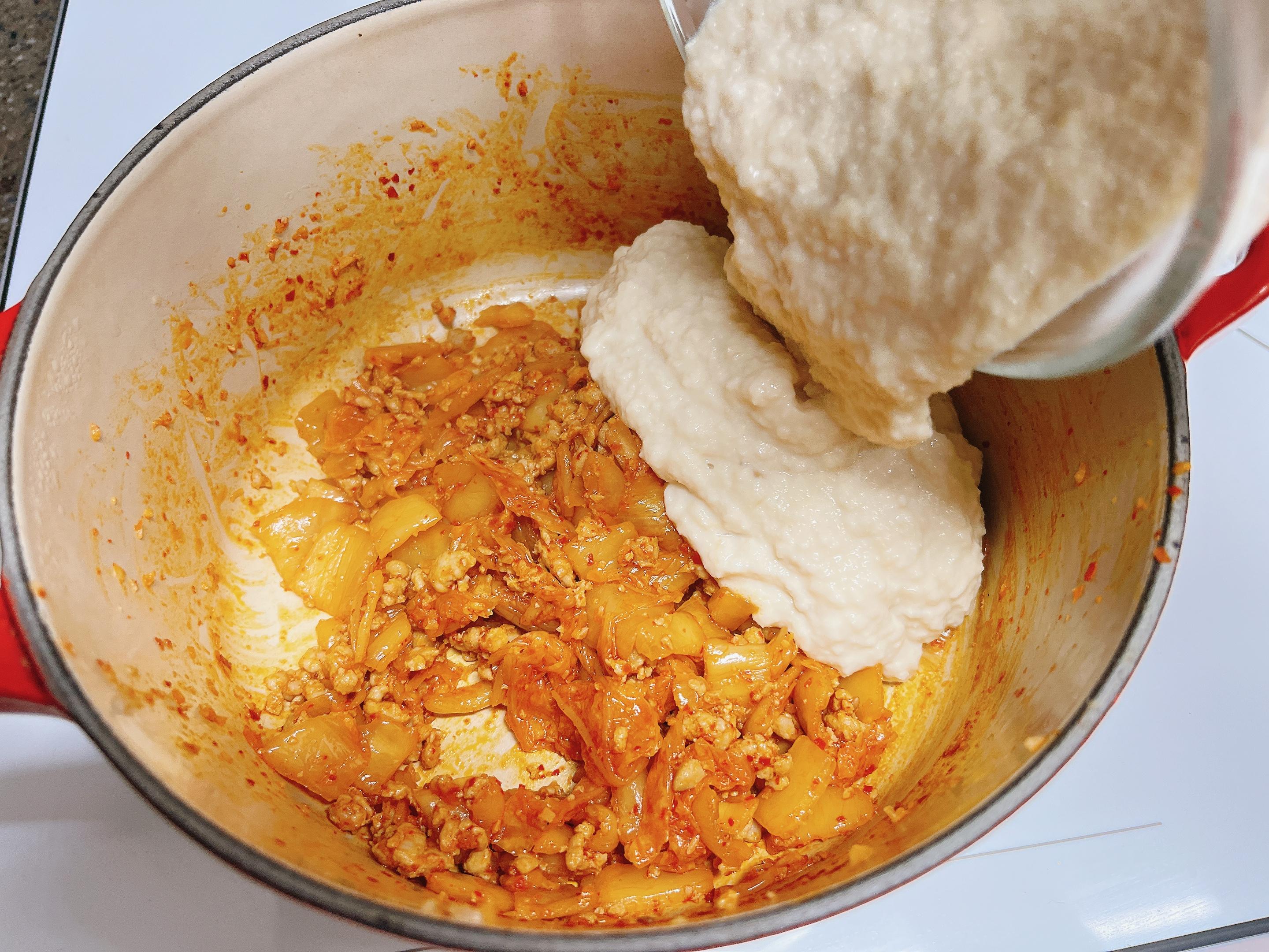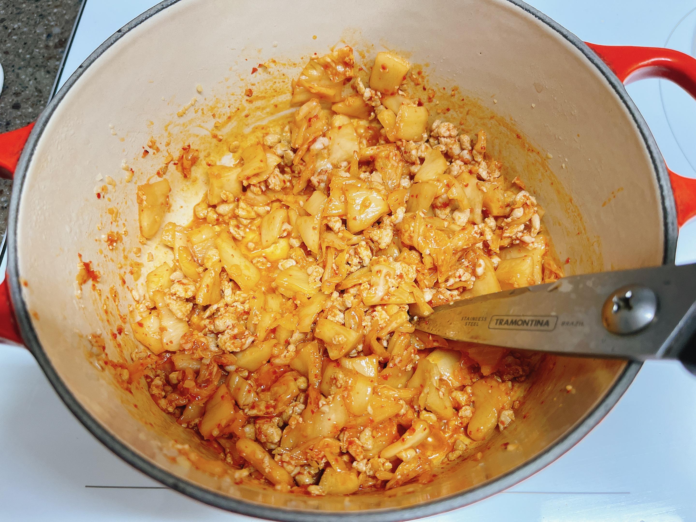그래서 김치를 충분히 볶아줘야 해요