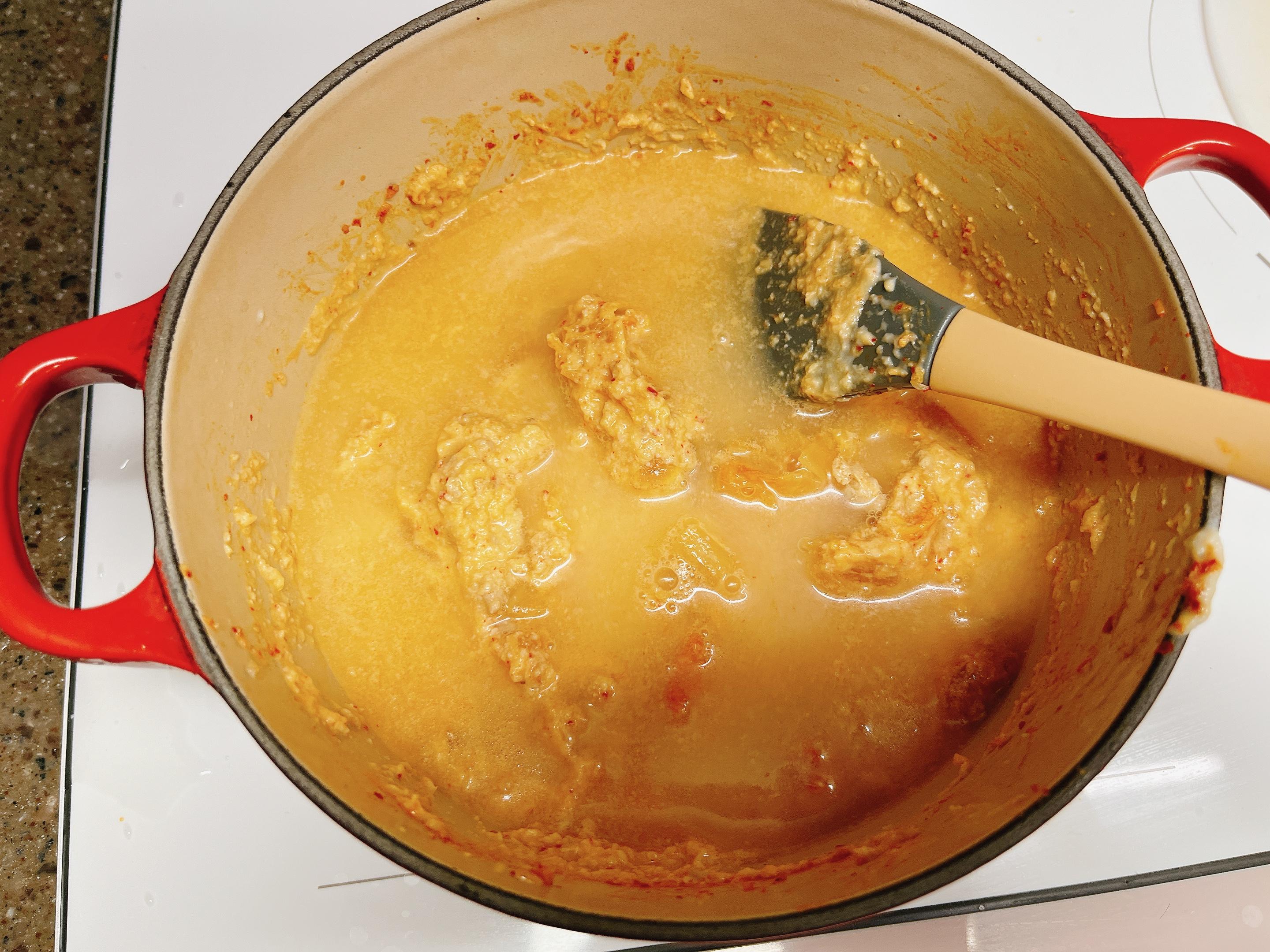 김치가 숨이 죽을 만큼 충분히 볶아졌을때