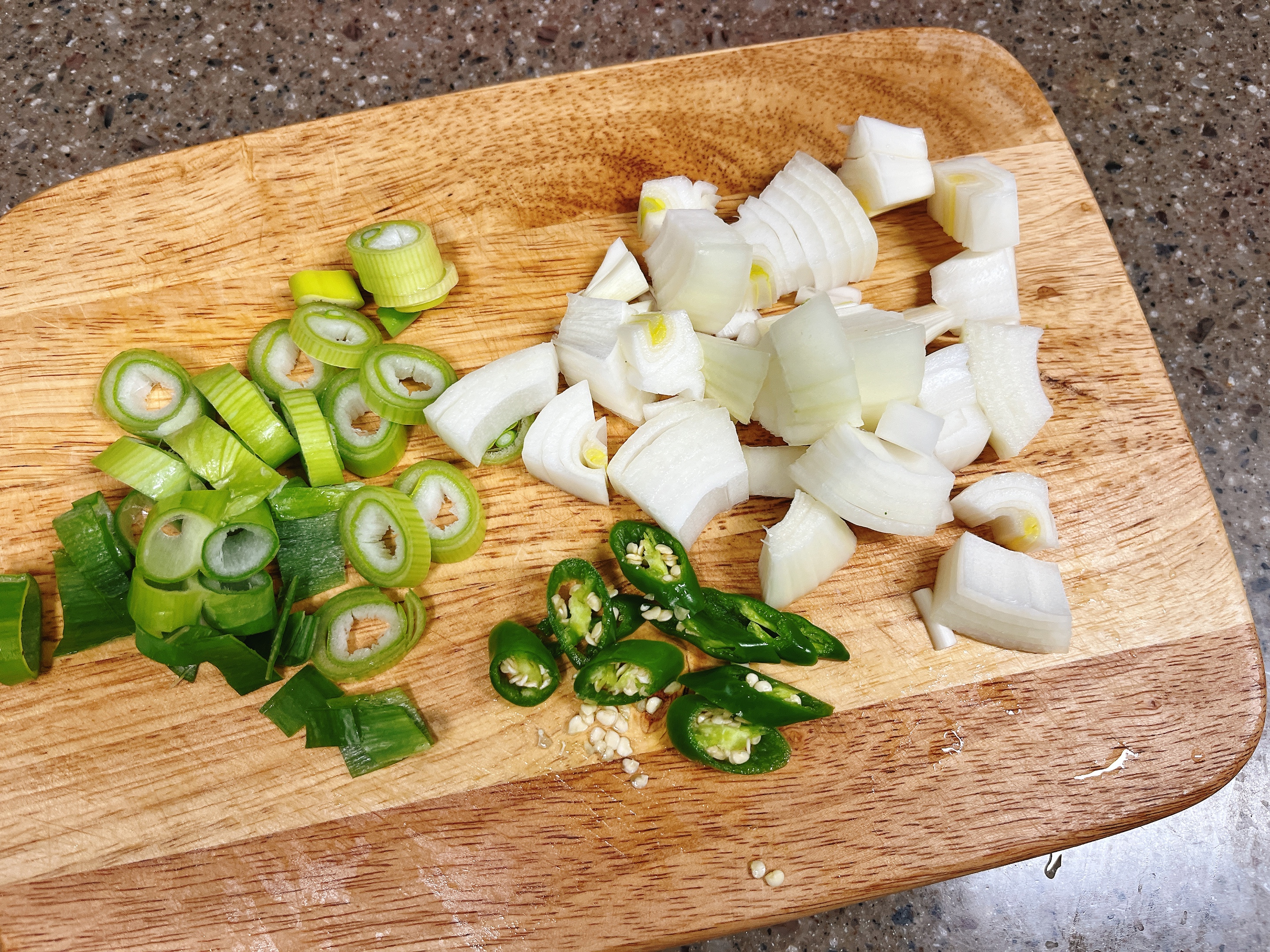 양파 1/4개, 대파 1/4개, 청양고추 1개(선택)