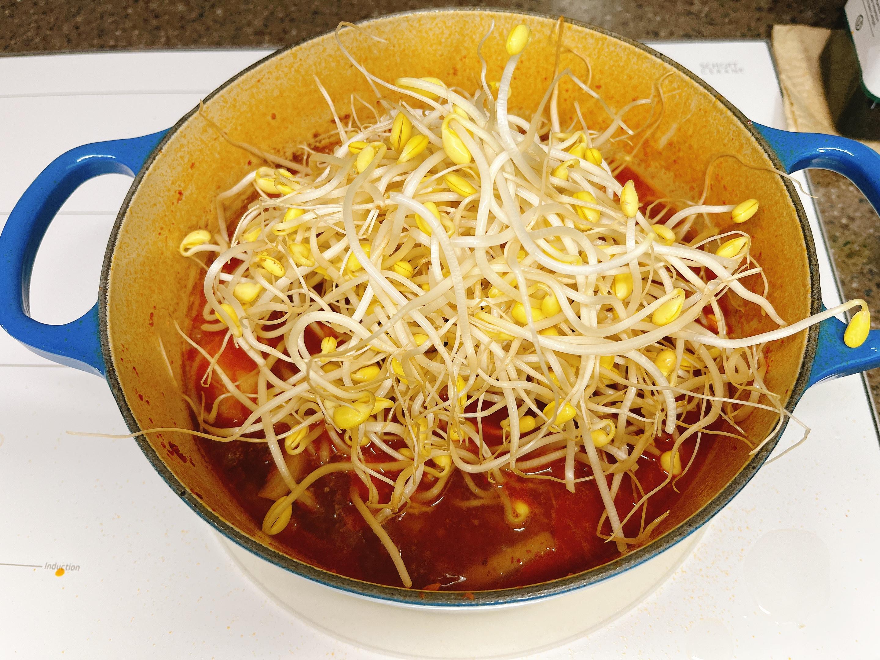 그런다음 콩나물을 넣어 뚜껑 덮고