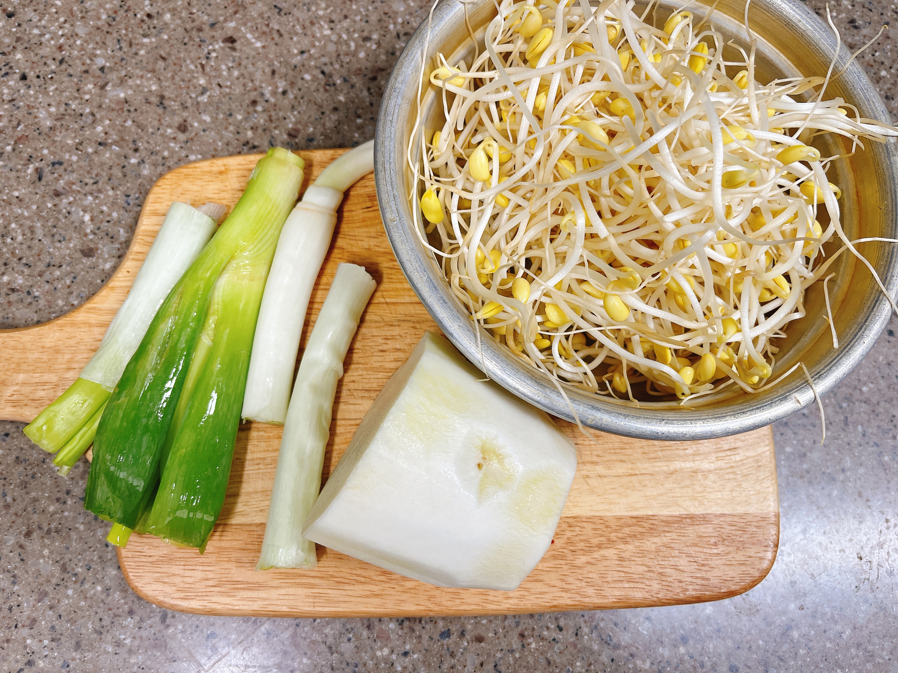콩나물, 무, 대파를 손질해요