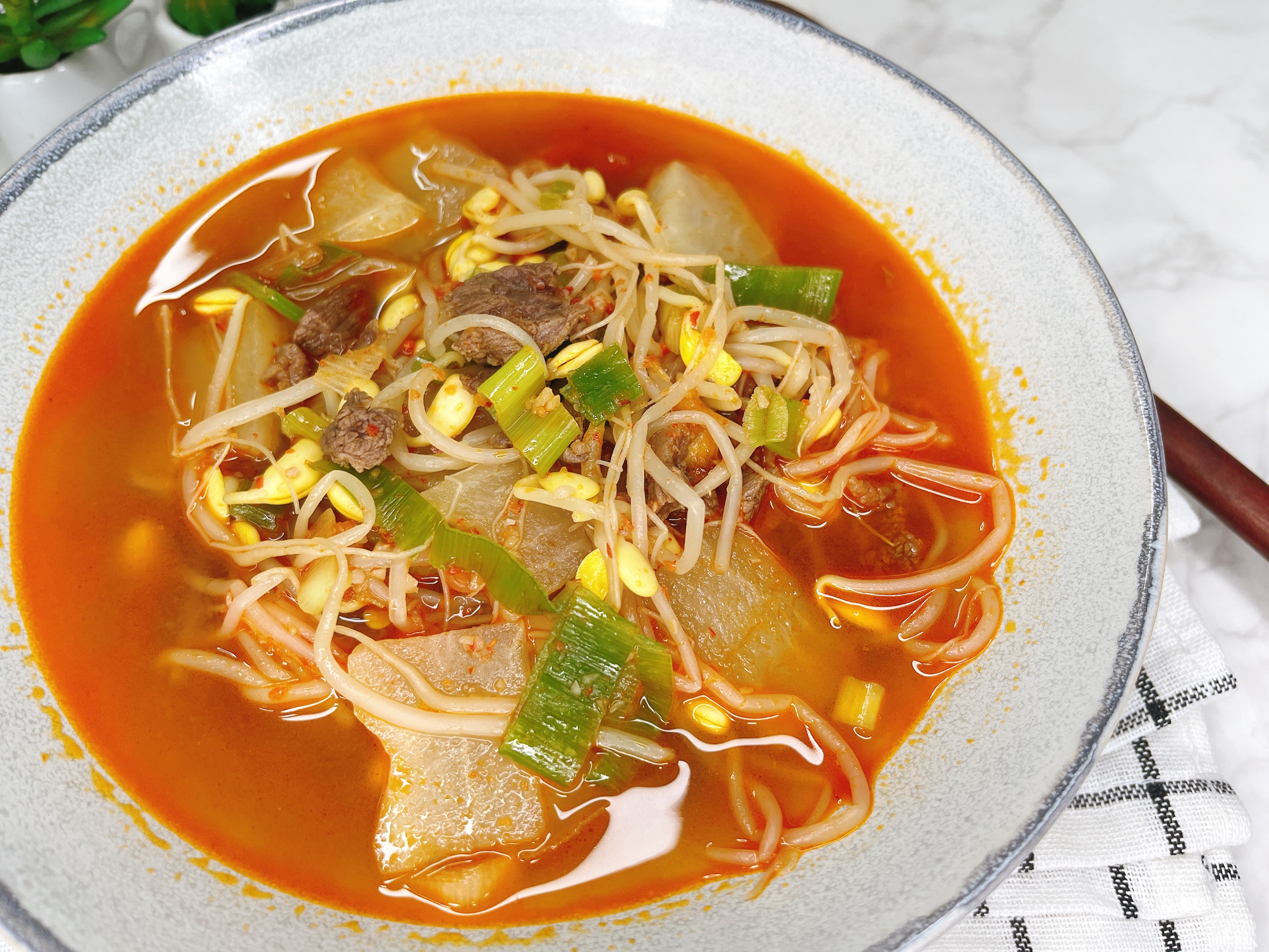 콩나물넣은 얼큰 소고기국을 끓어봤네요