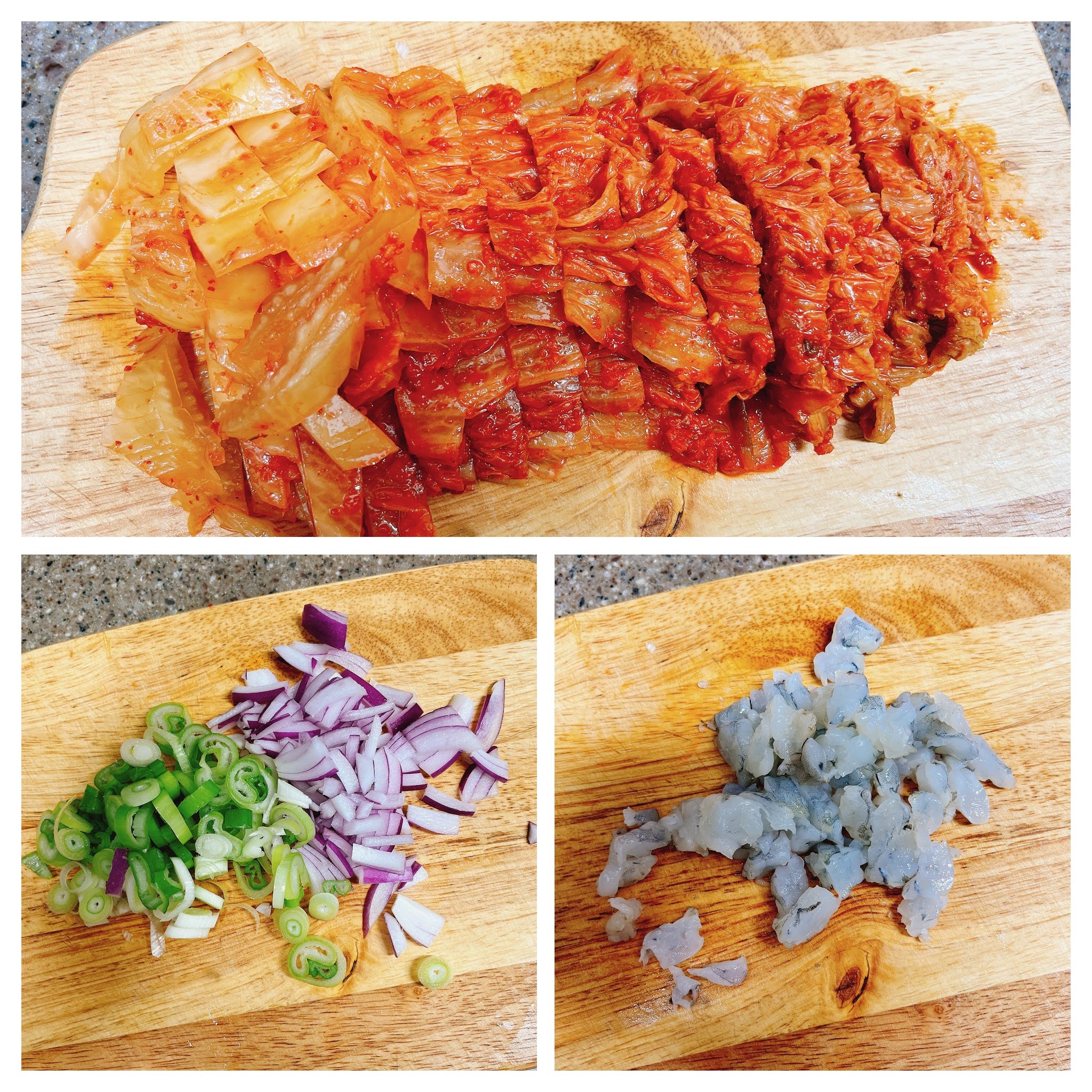 김치, 양파, 대파를 준비하고