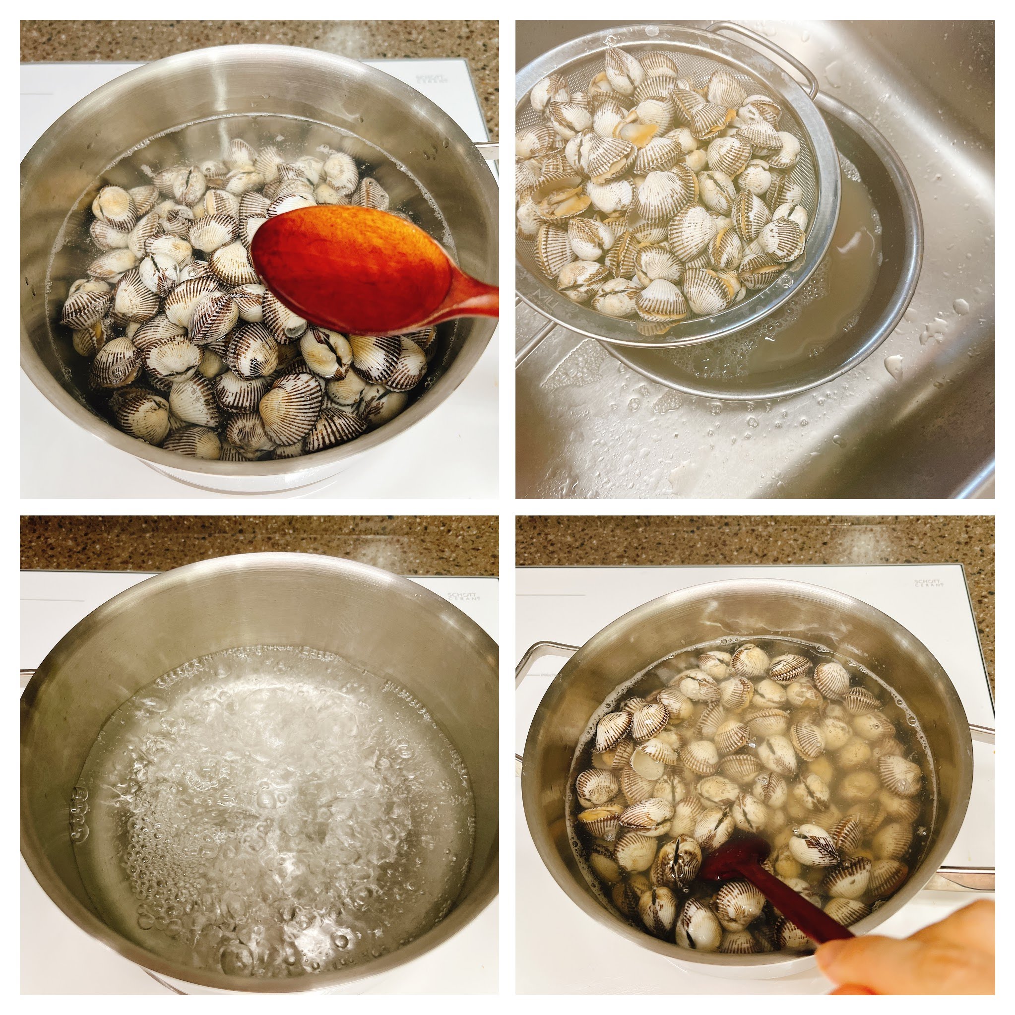 꼬막 삶을때 : 물 1리터 + 맛술 2스푼