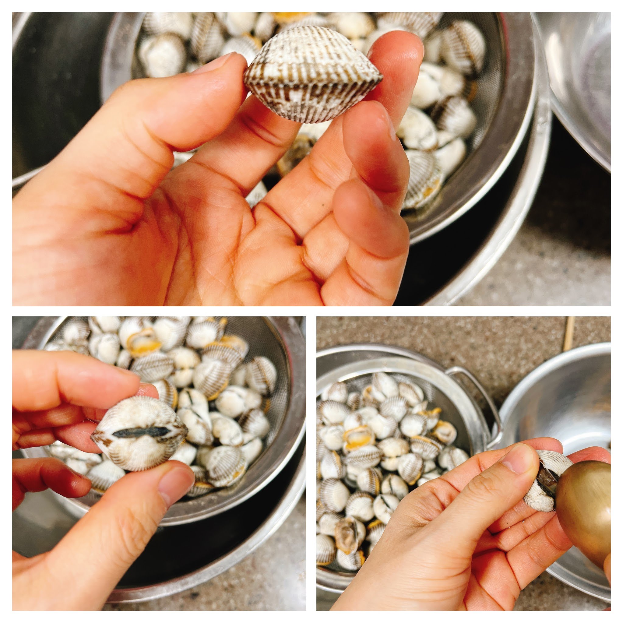 벌려진 꼬막은 한쪽껍질을 떼어내 옮겨주고,