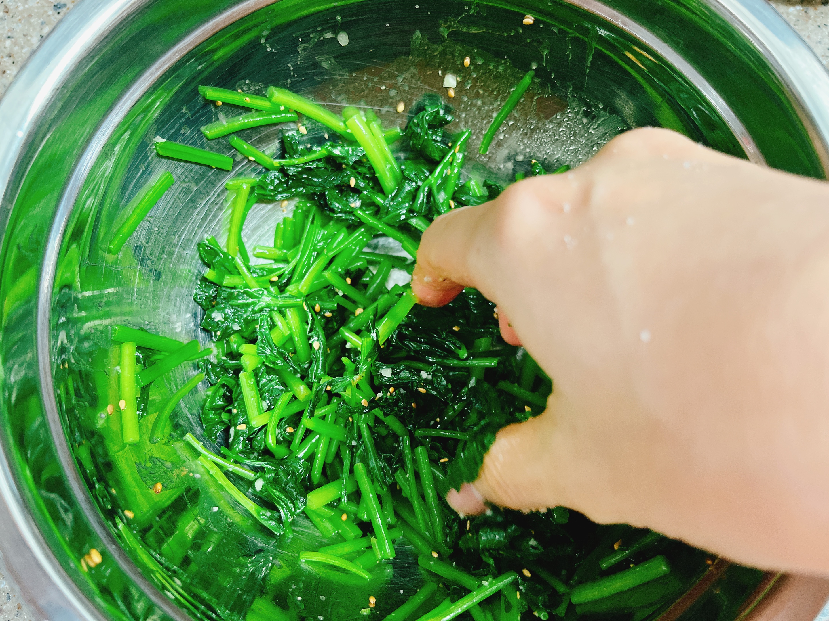 길이가 기니까 데치기 편하게 반으로 잘라줬어요