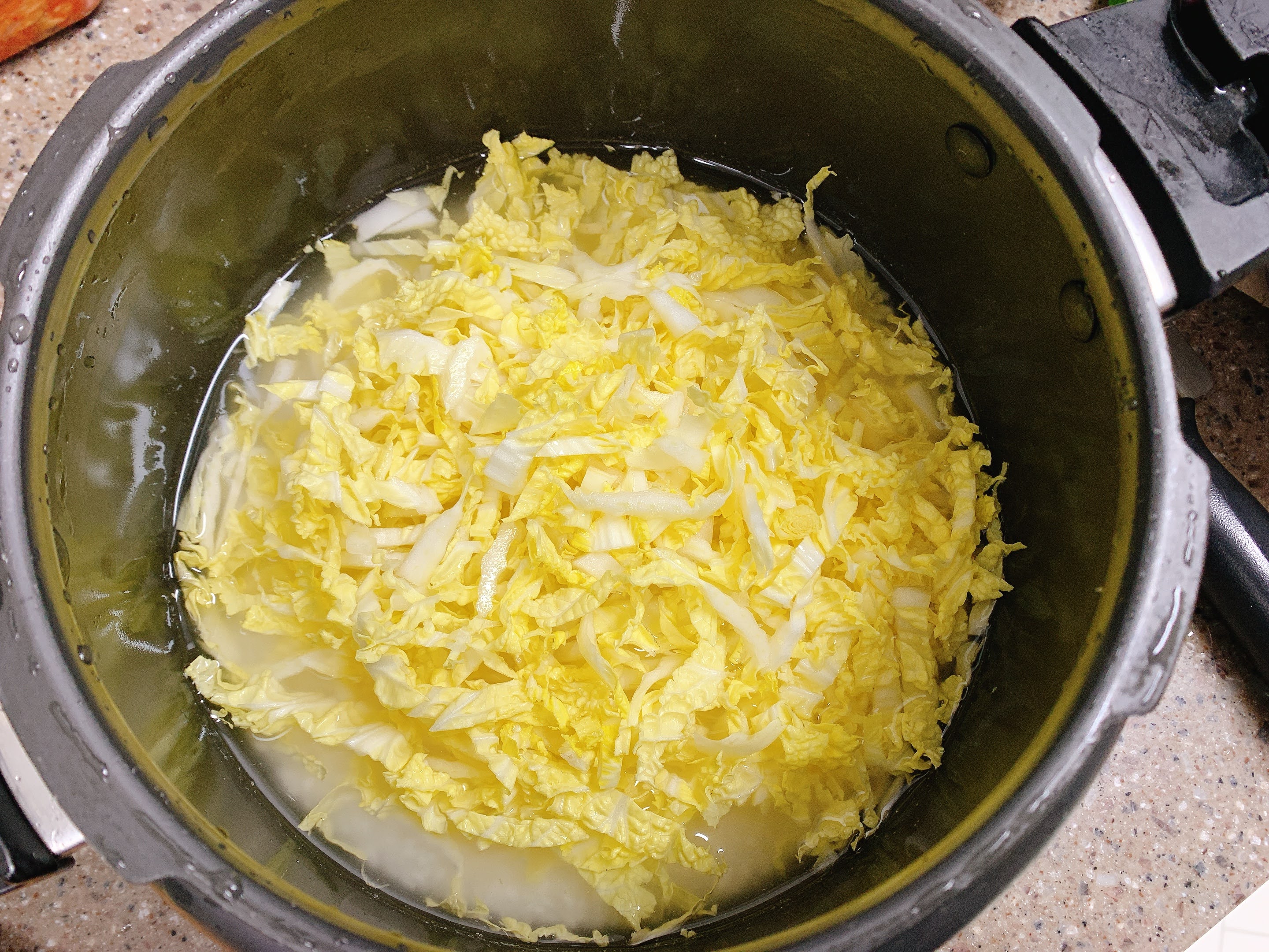 압력솥이라 배추를 첨부터 함께 넣어야 해서