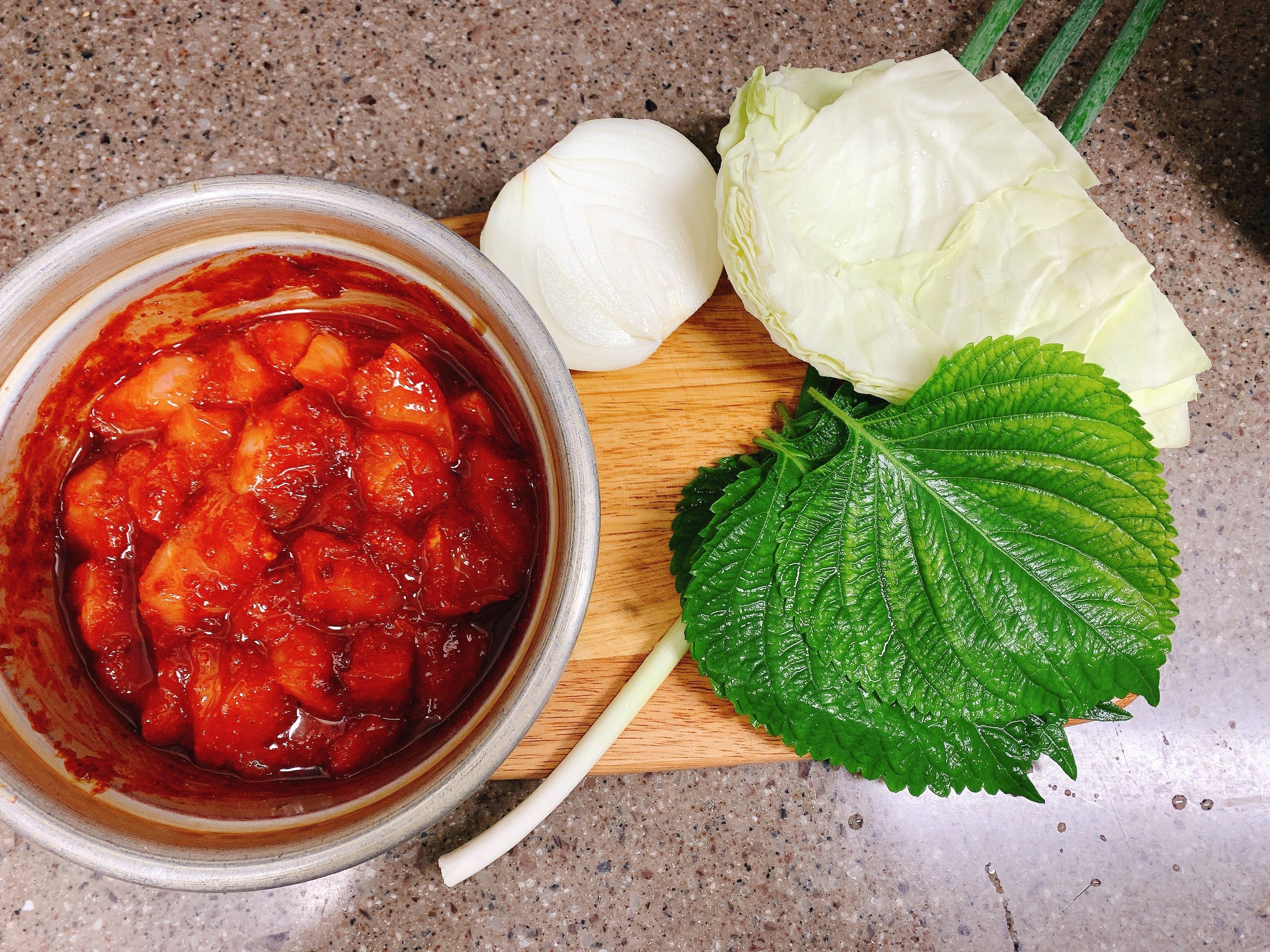 양배추, 양파, 대파, 깻잎을 준비했어요