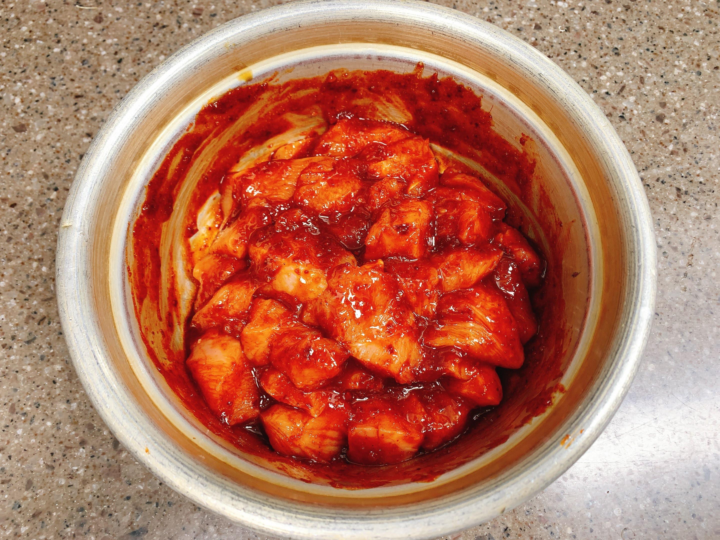 고추장, 고추가루, 간장, 설탕, 다진마늘, 후추가루, 올리고당을