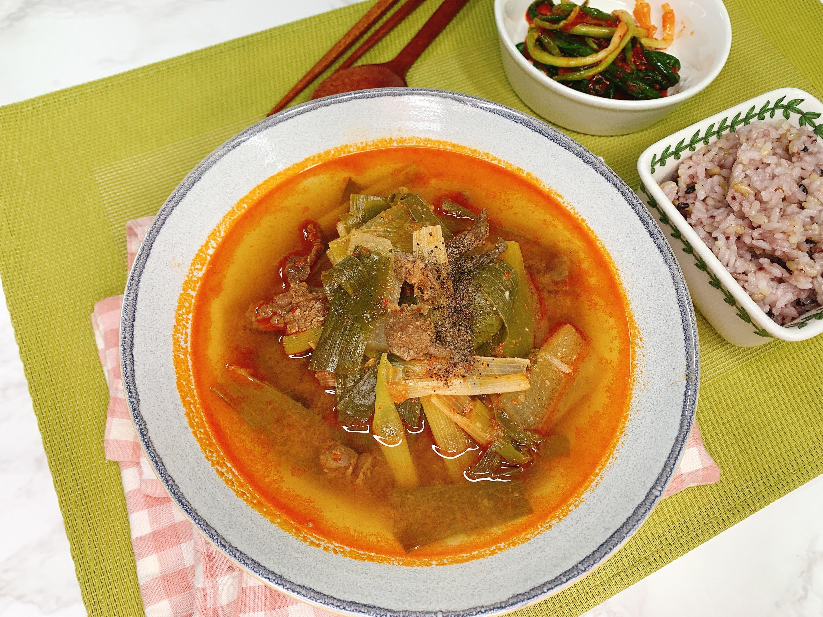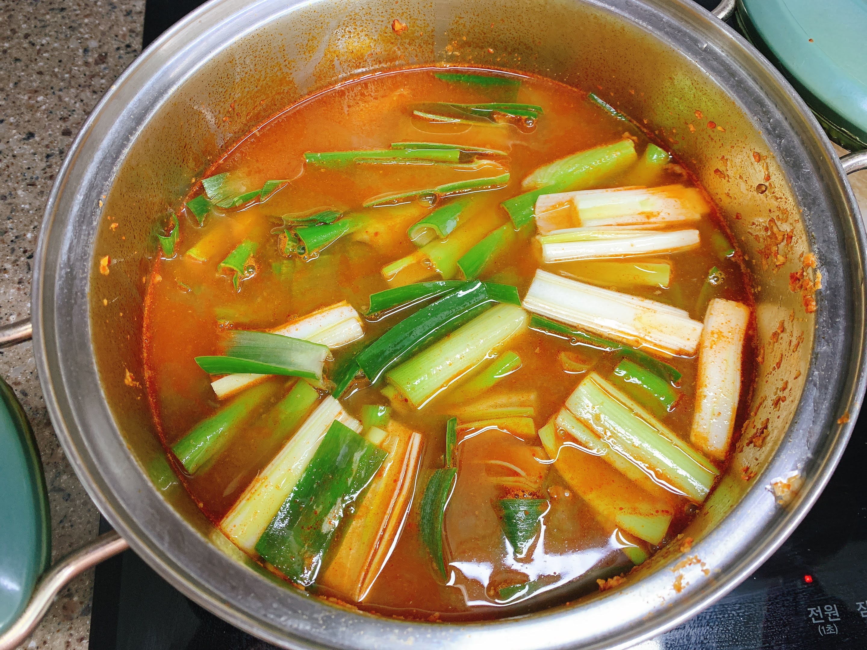 이번엔 소고깃국에 대파듬뿍 넣고 끓였어요