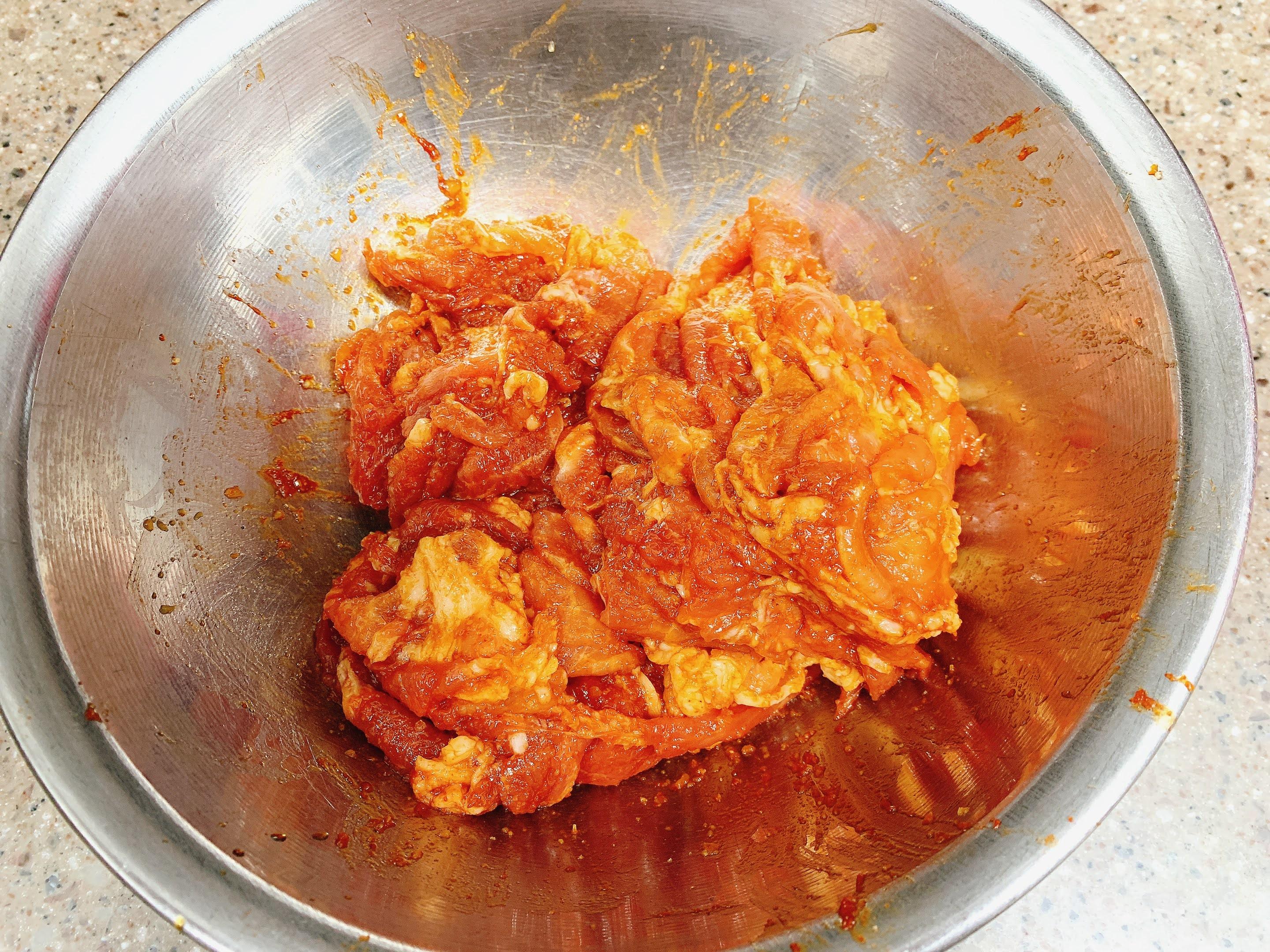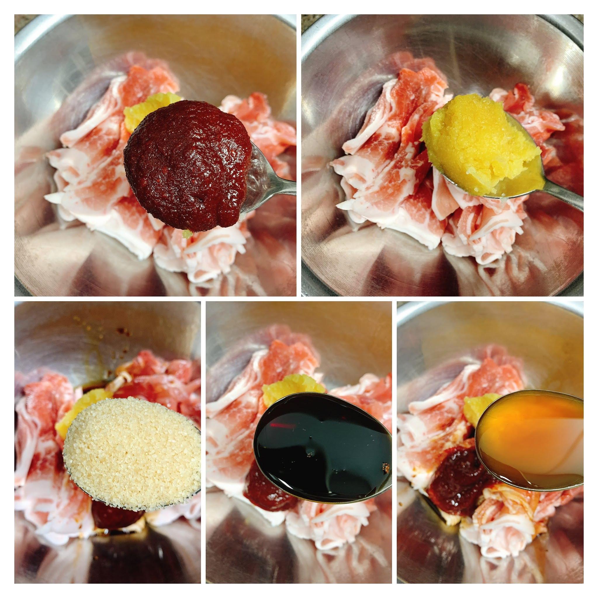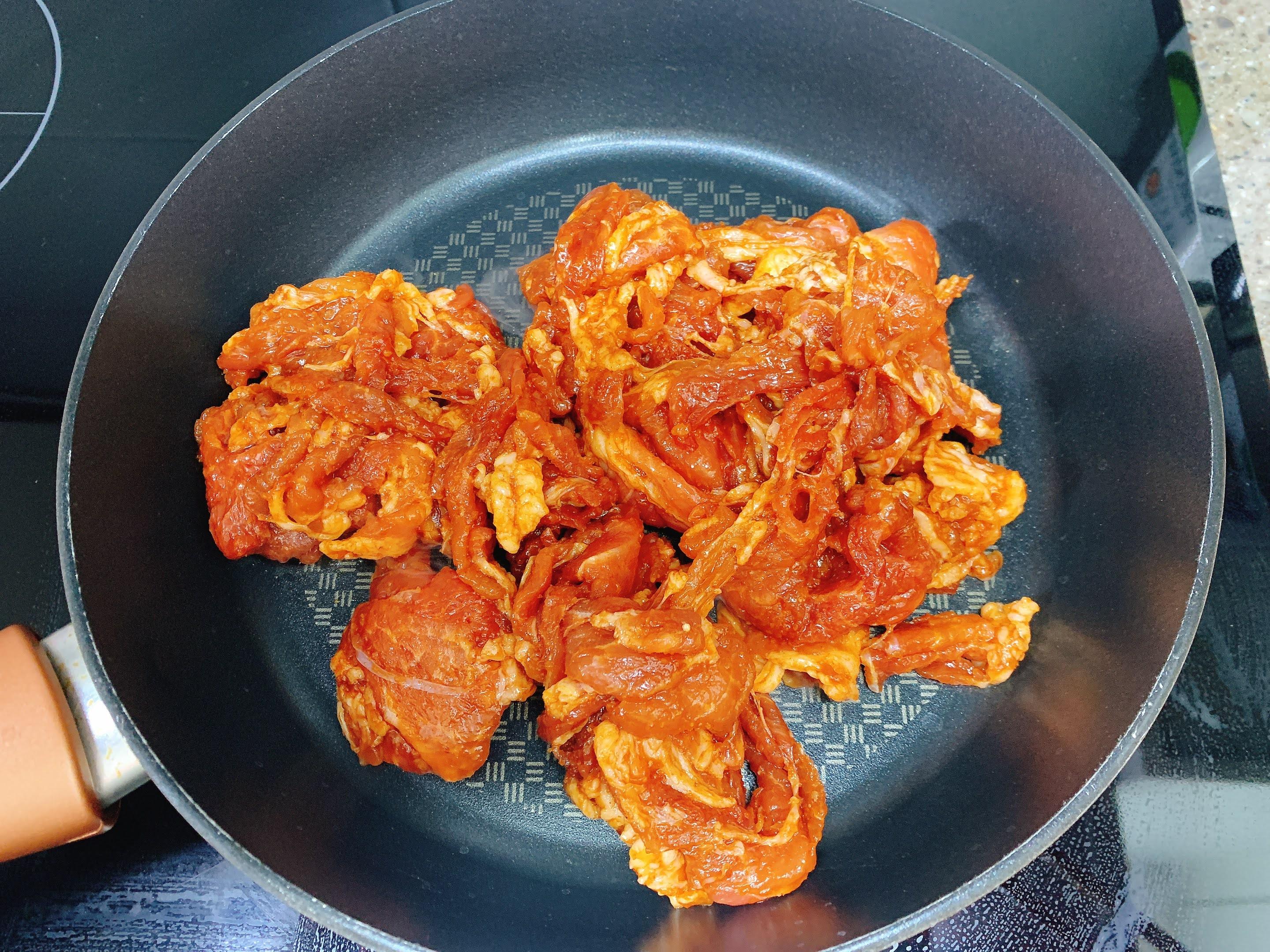식용유 1스푼정도 두르고~ 양념해둔 앞다리살을 넣고 볶아요