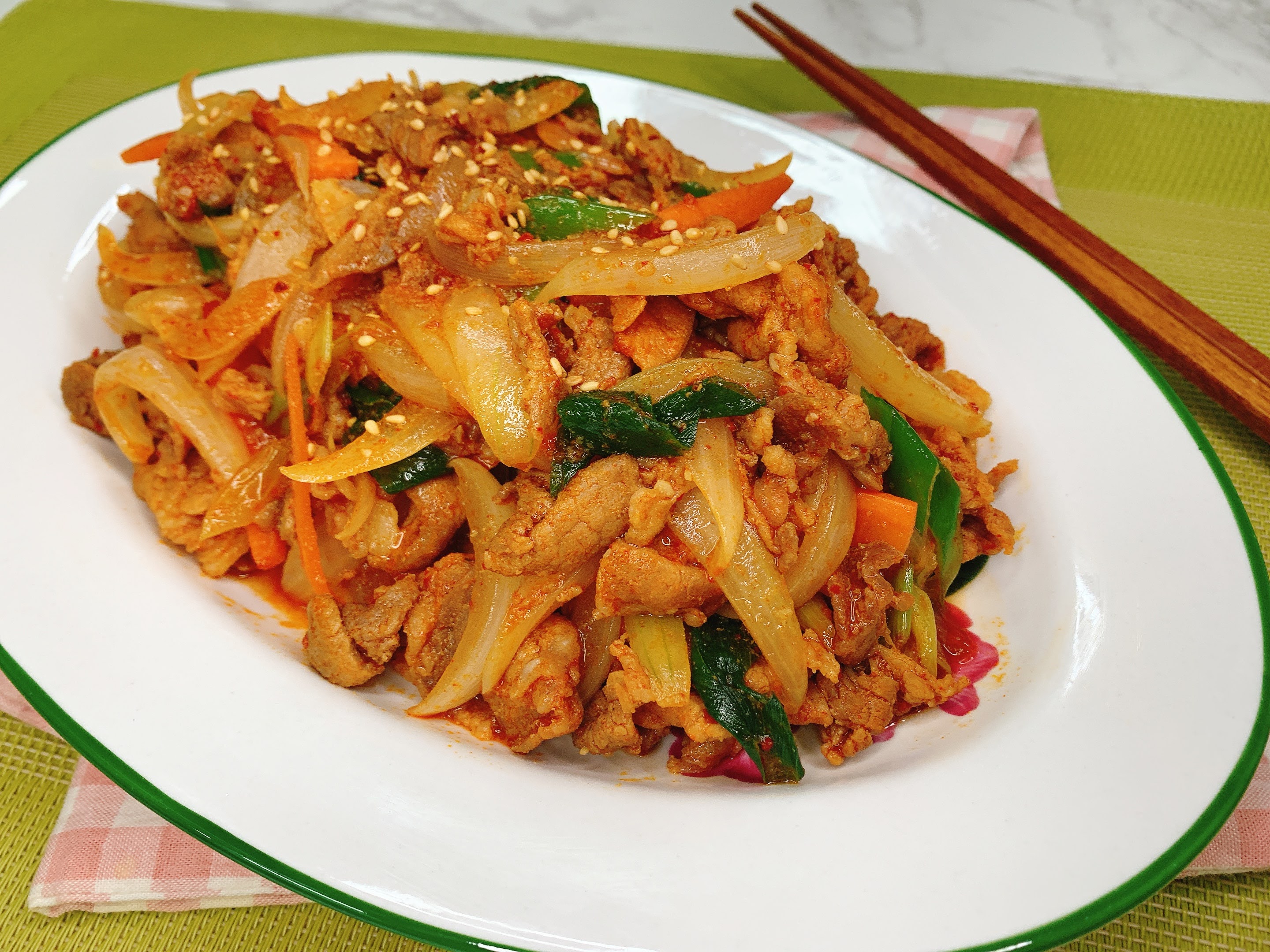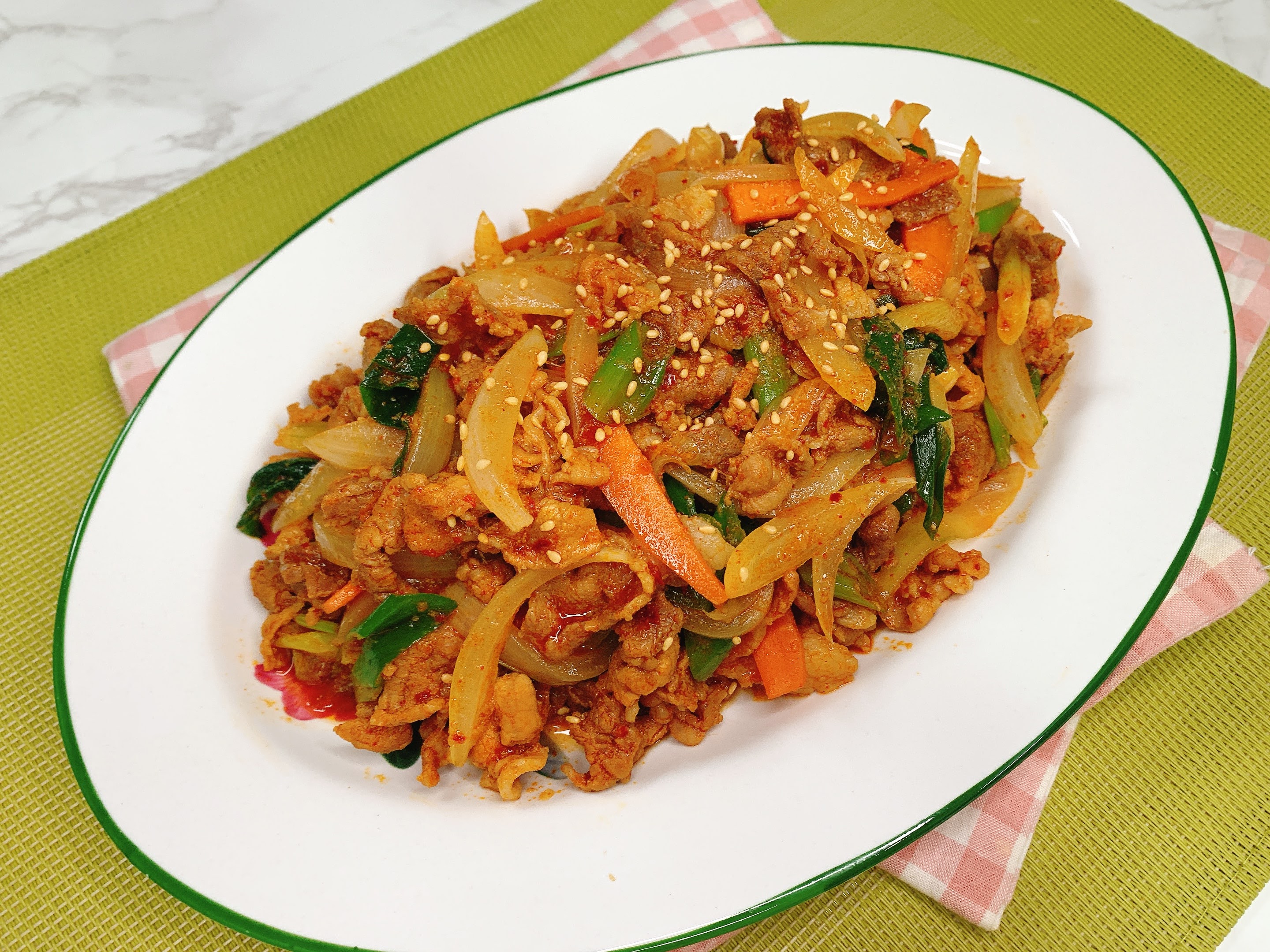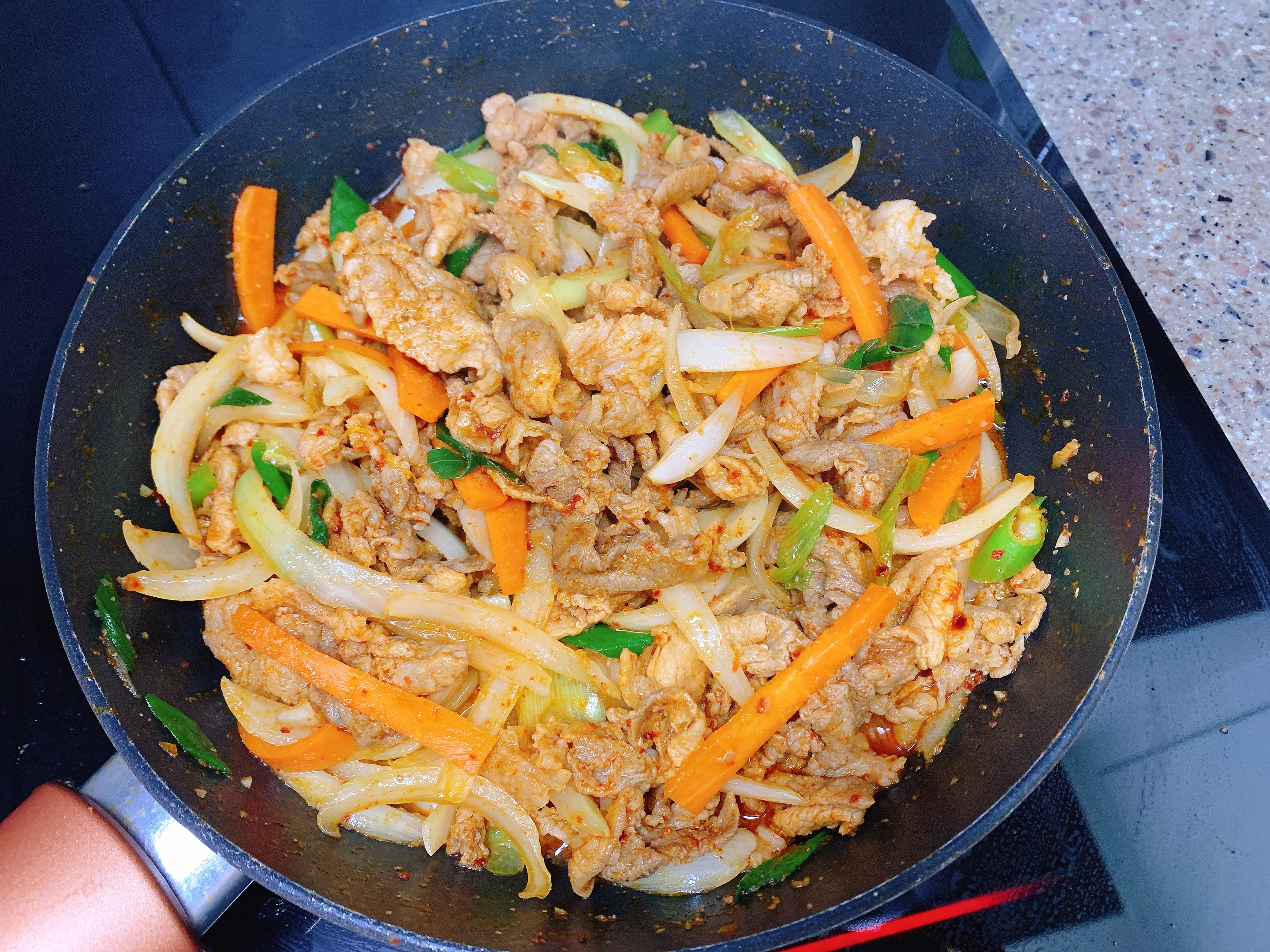 매콤하게 느껴지는 제육볶음을 만들었어요