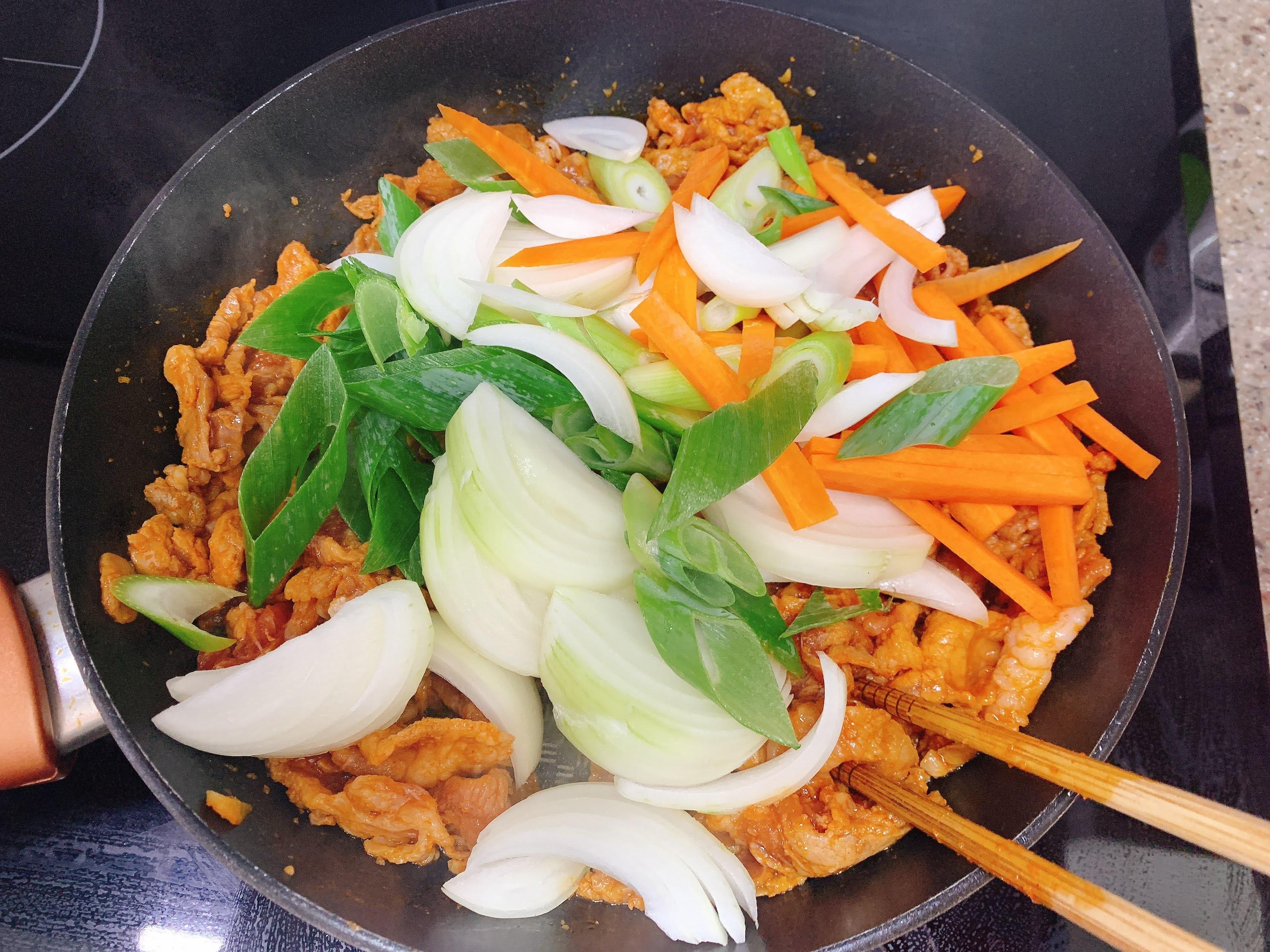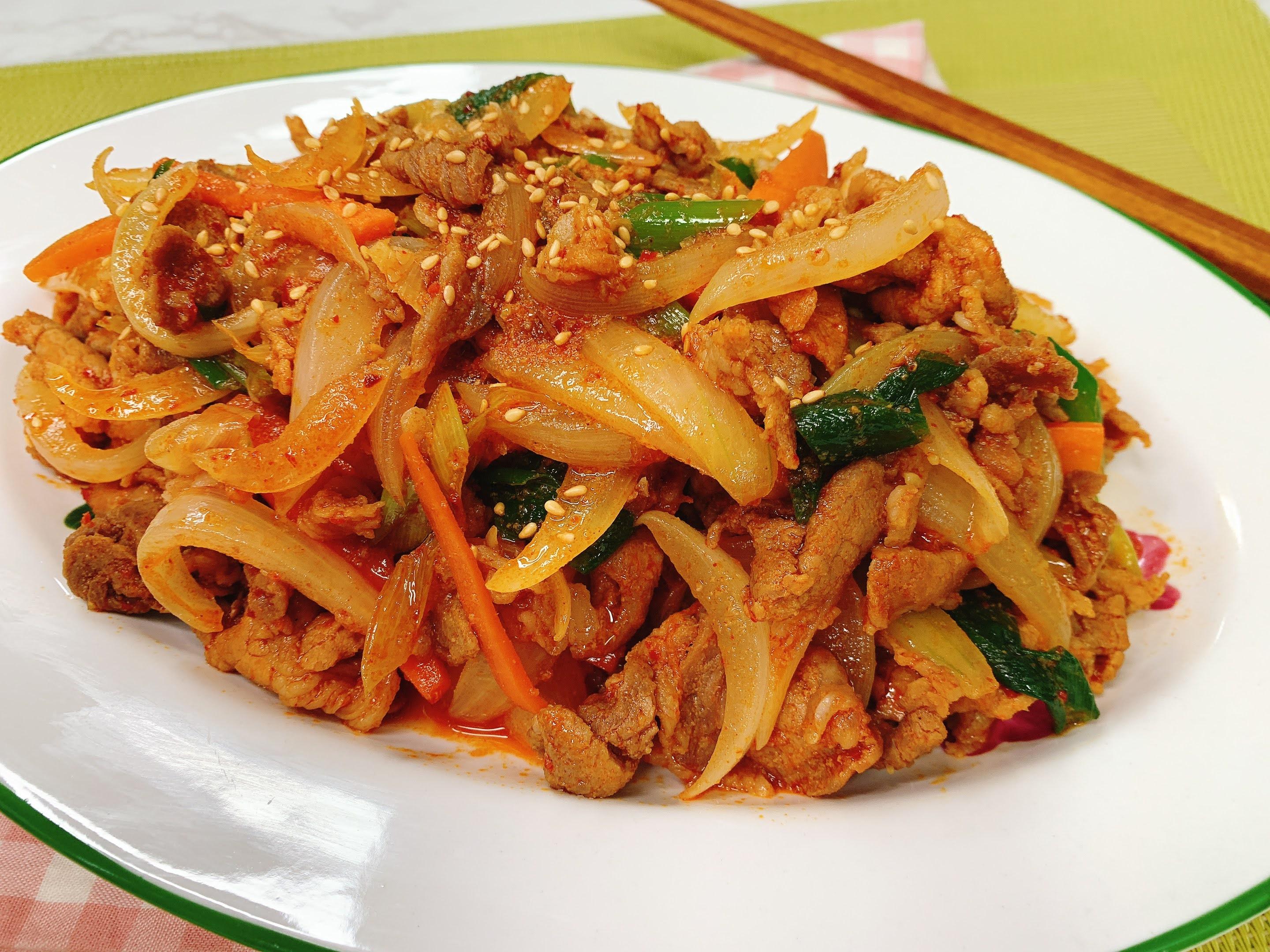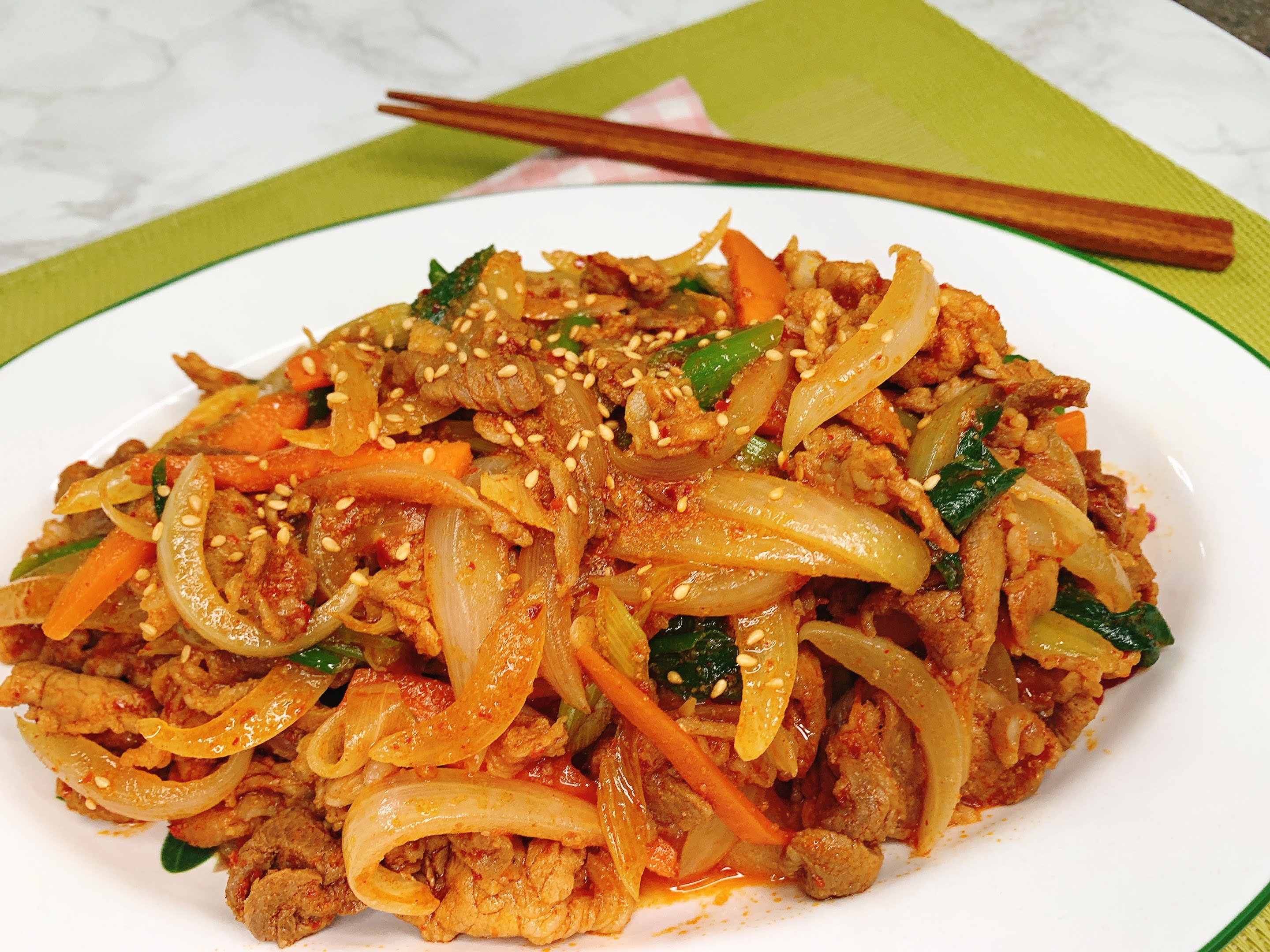 매콤하게 느껴지는 제육볶음을 만들었어요