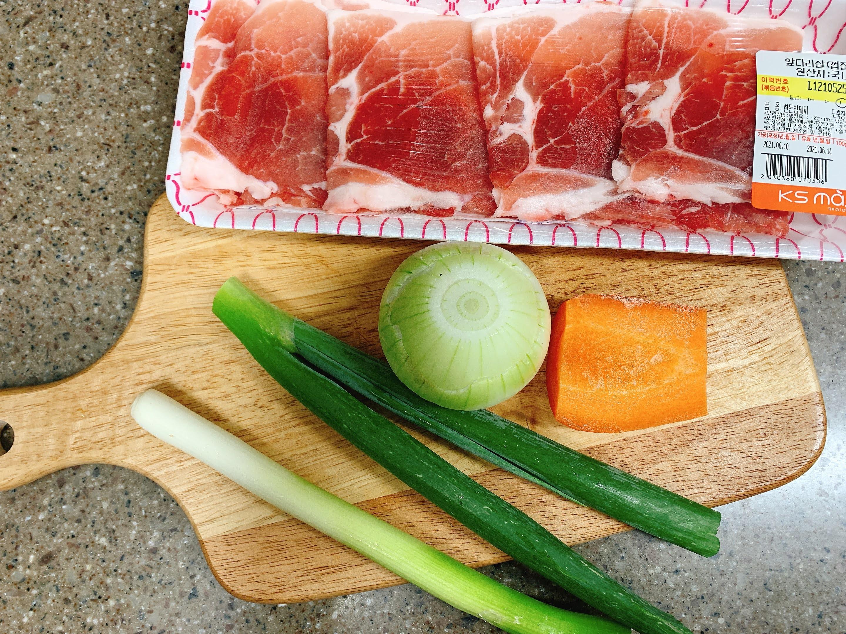 앞다리살은 불고기감으로 얇게 썰어진걸 준비하고,