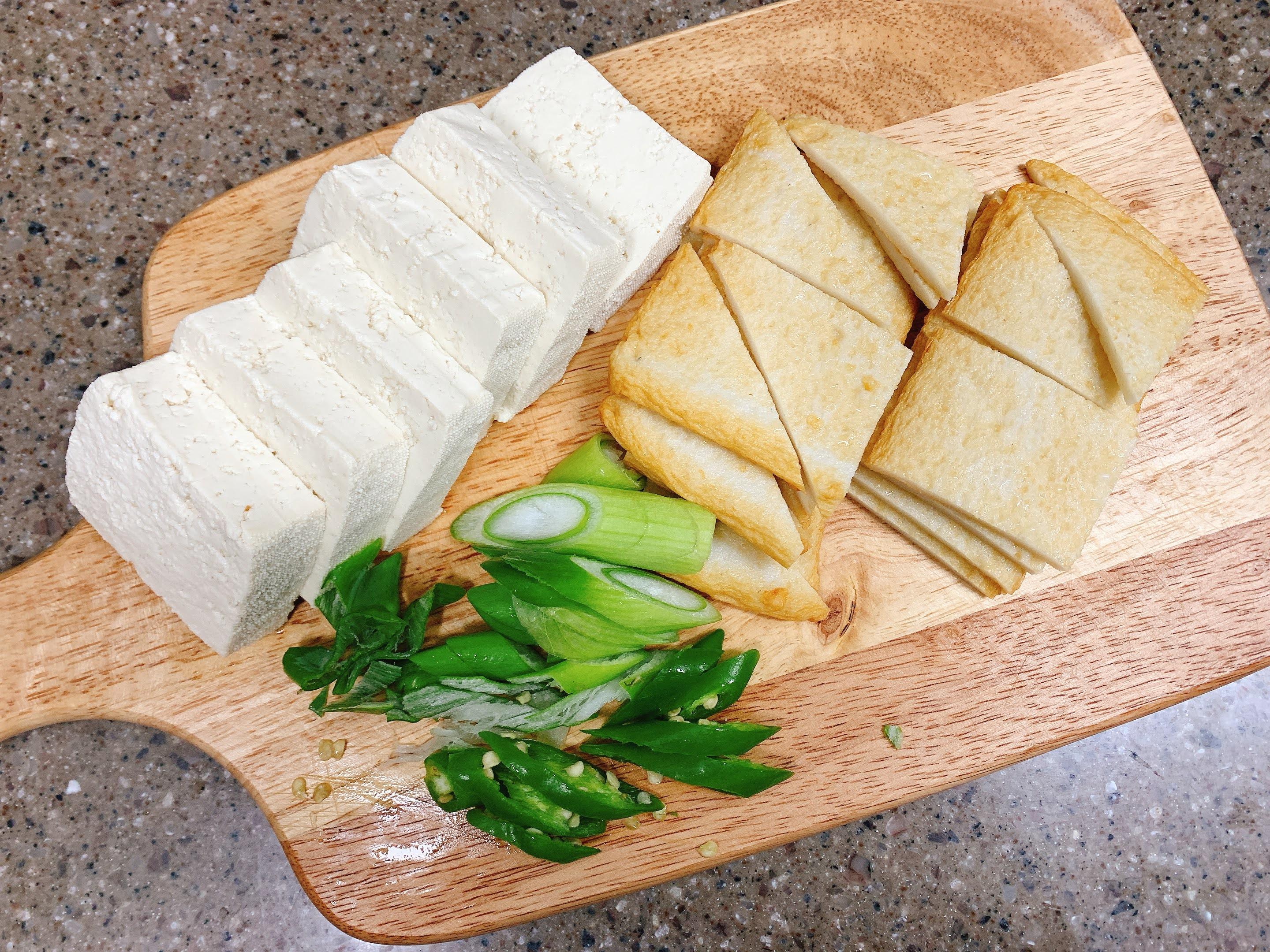 쓰고 남겨둔 두부와 냉장고에 있던 어묵