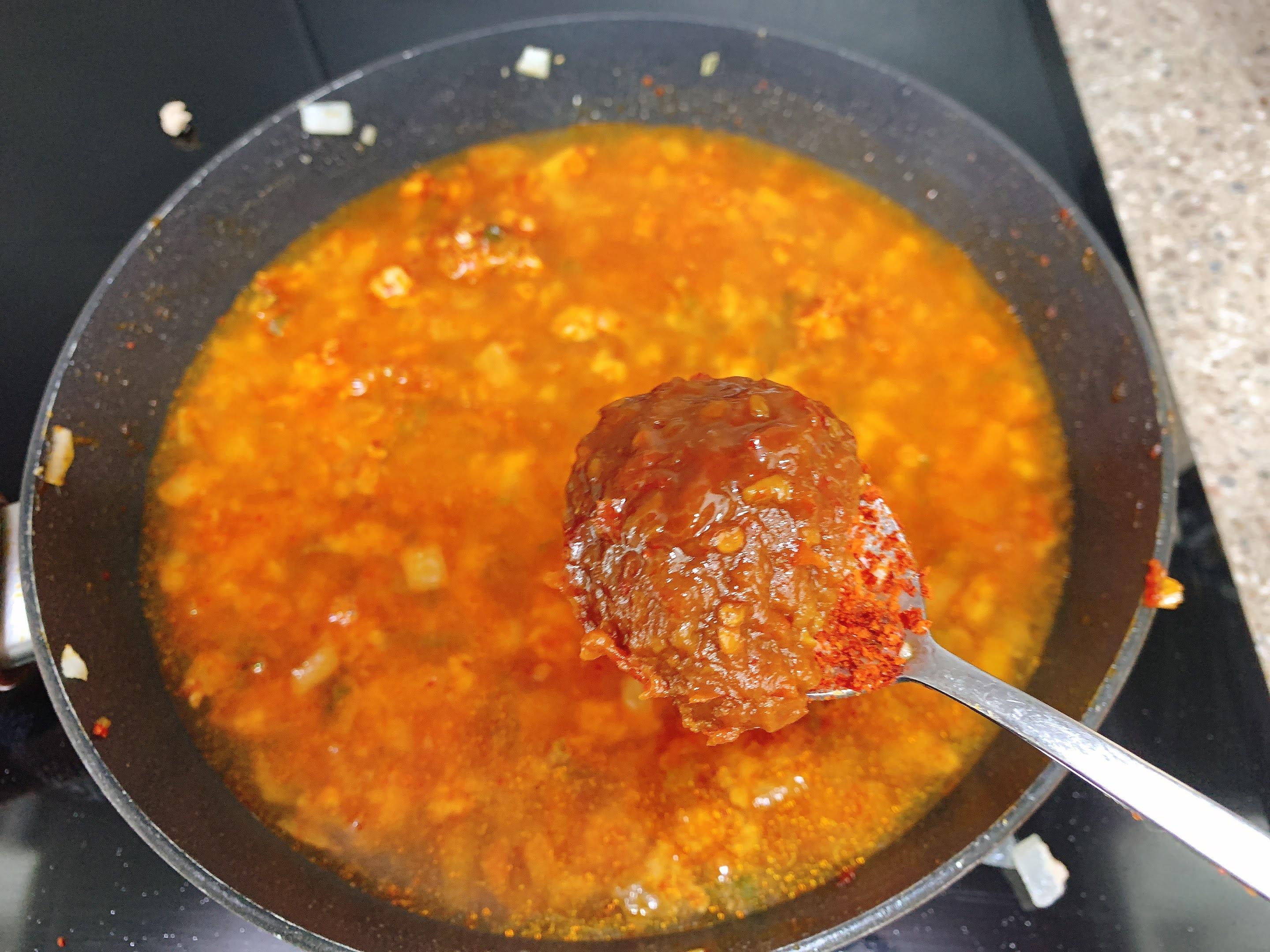 부드러운 두부와 매콤한 걸쭉한 양념이