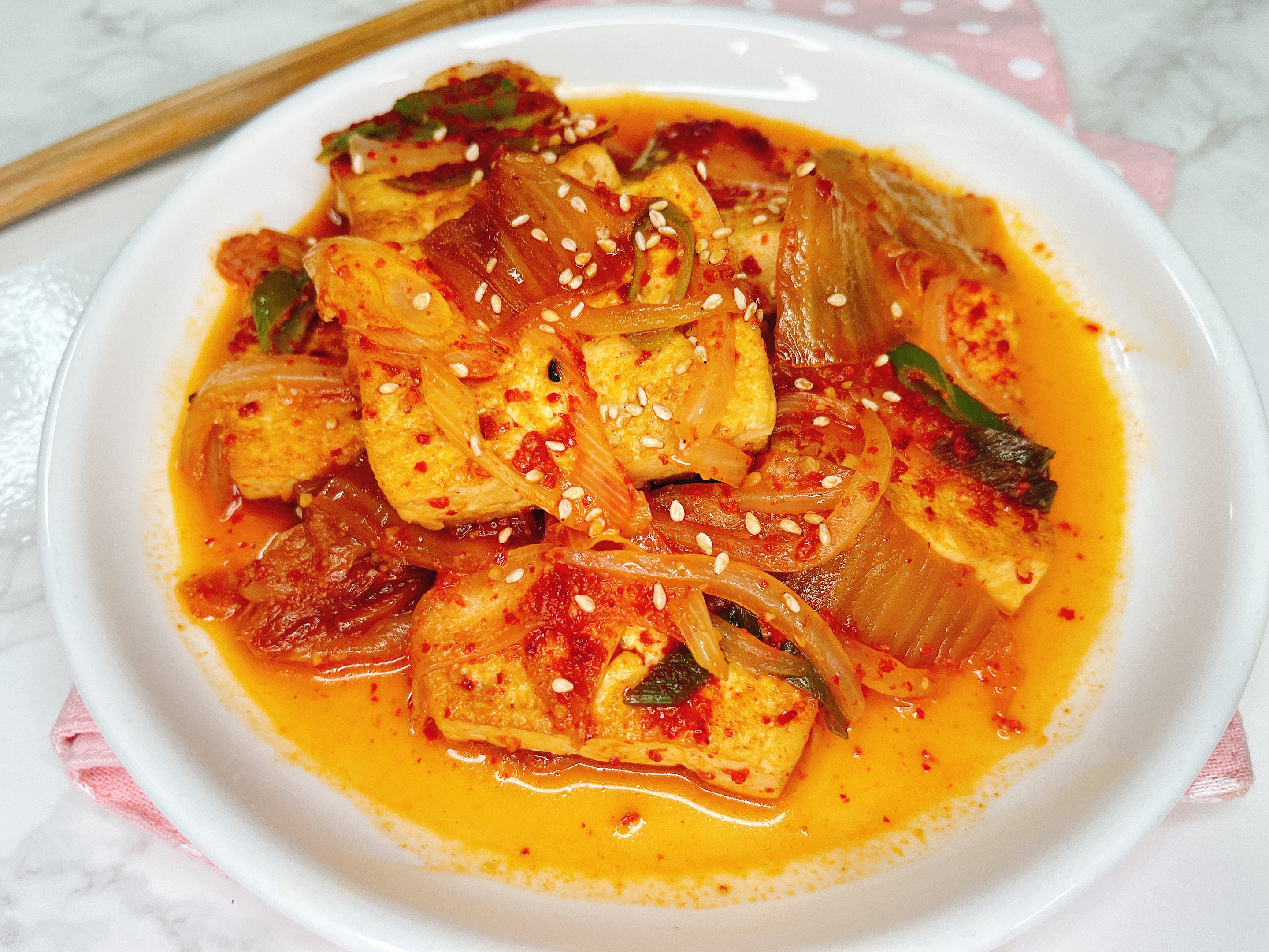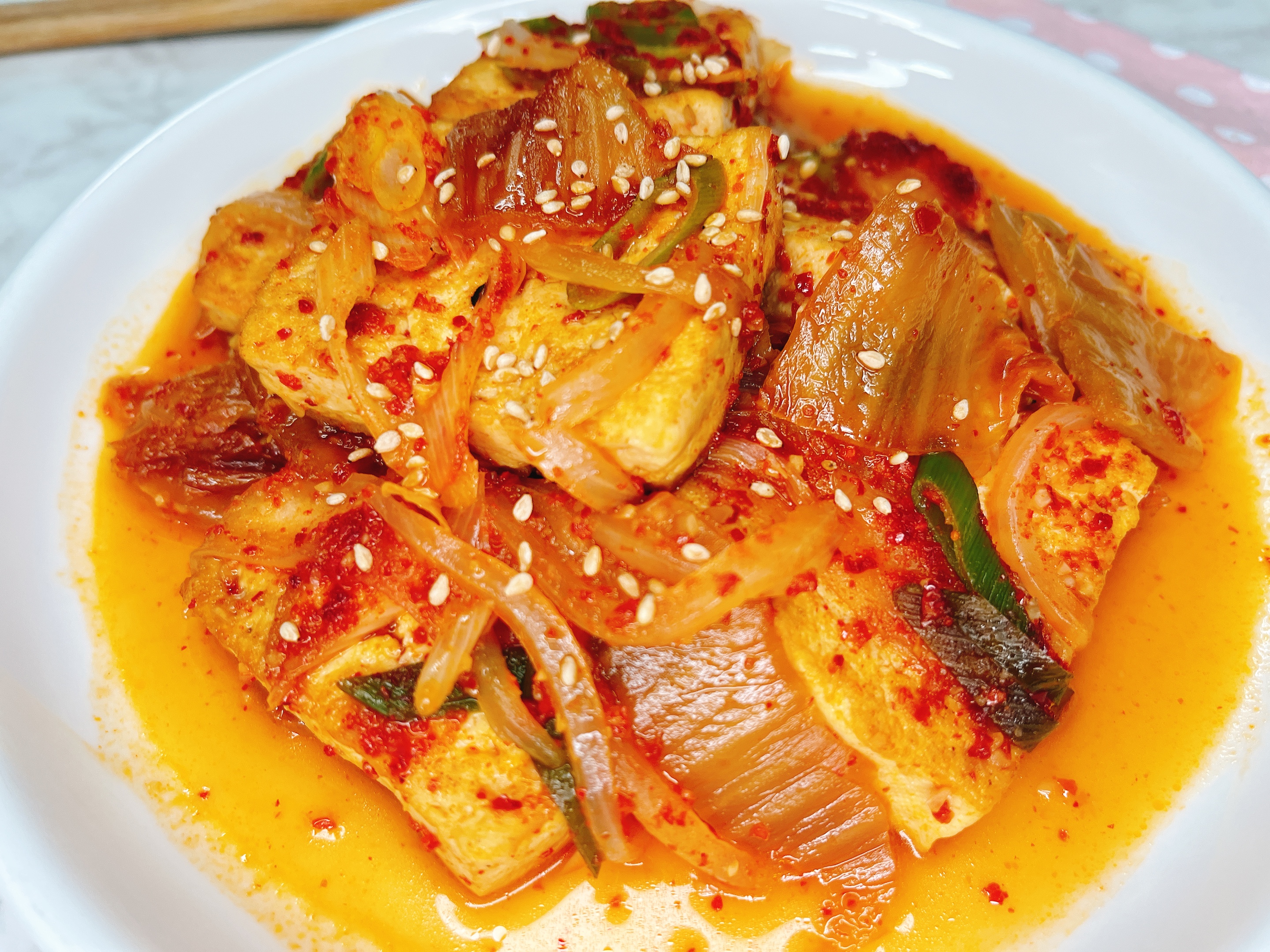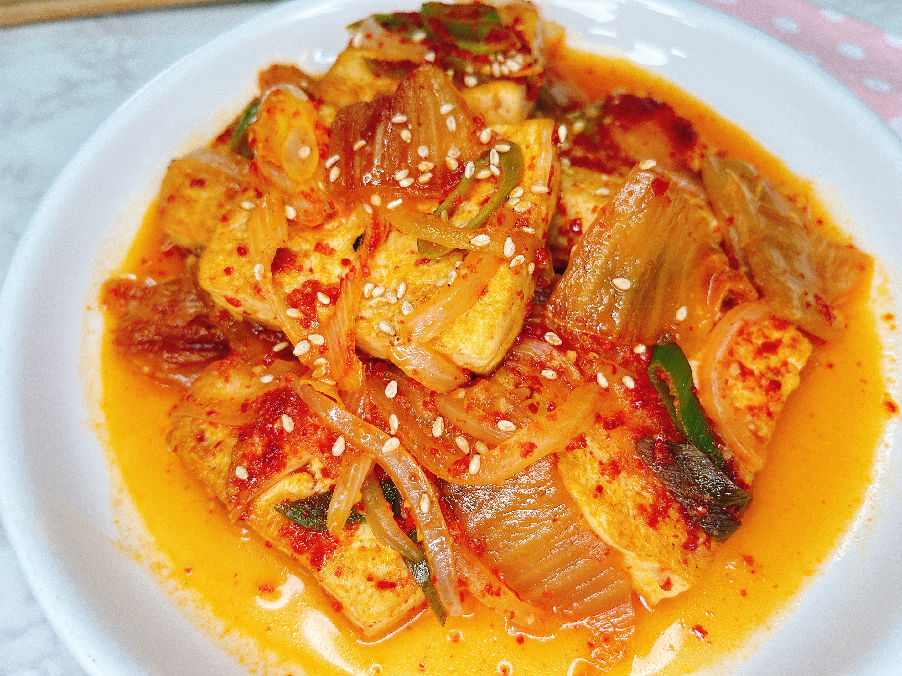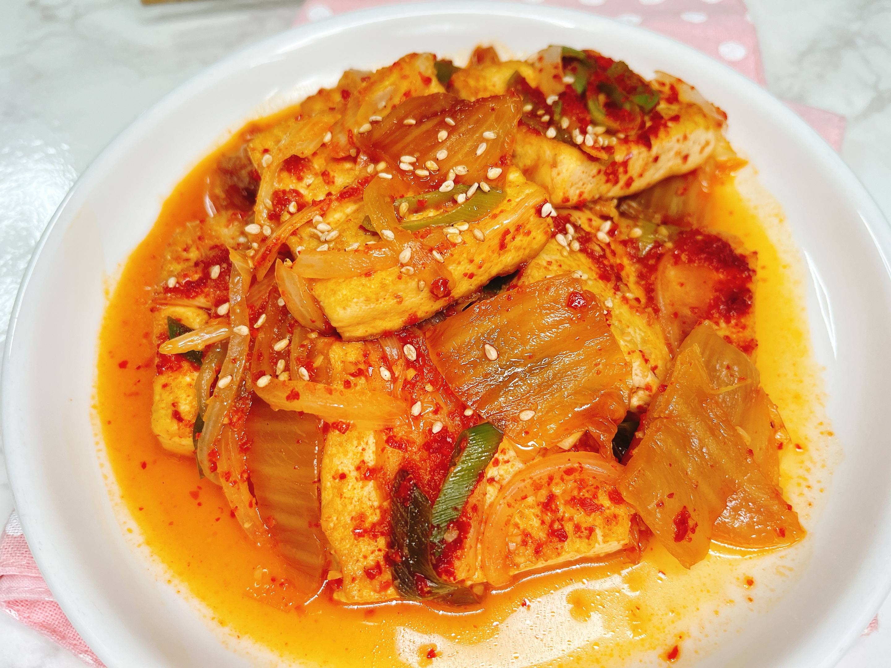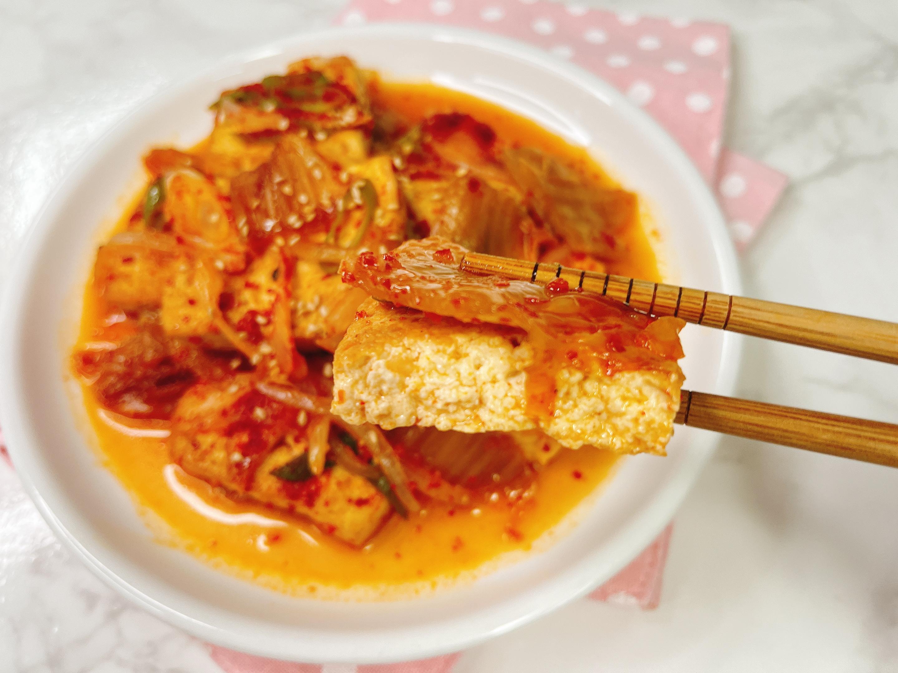 두부와 김치를 조려 조림을 만들었어요