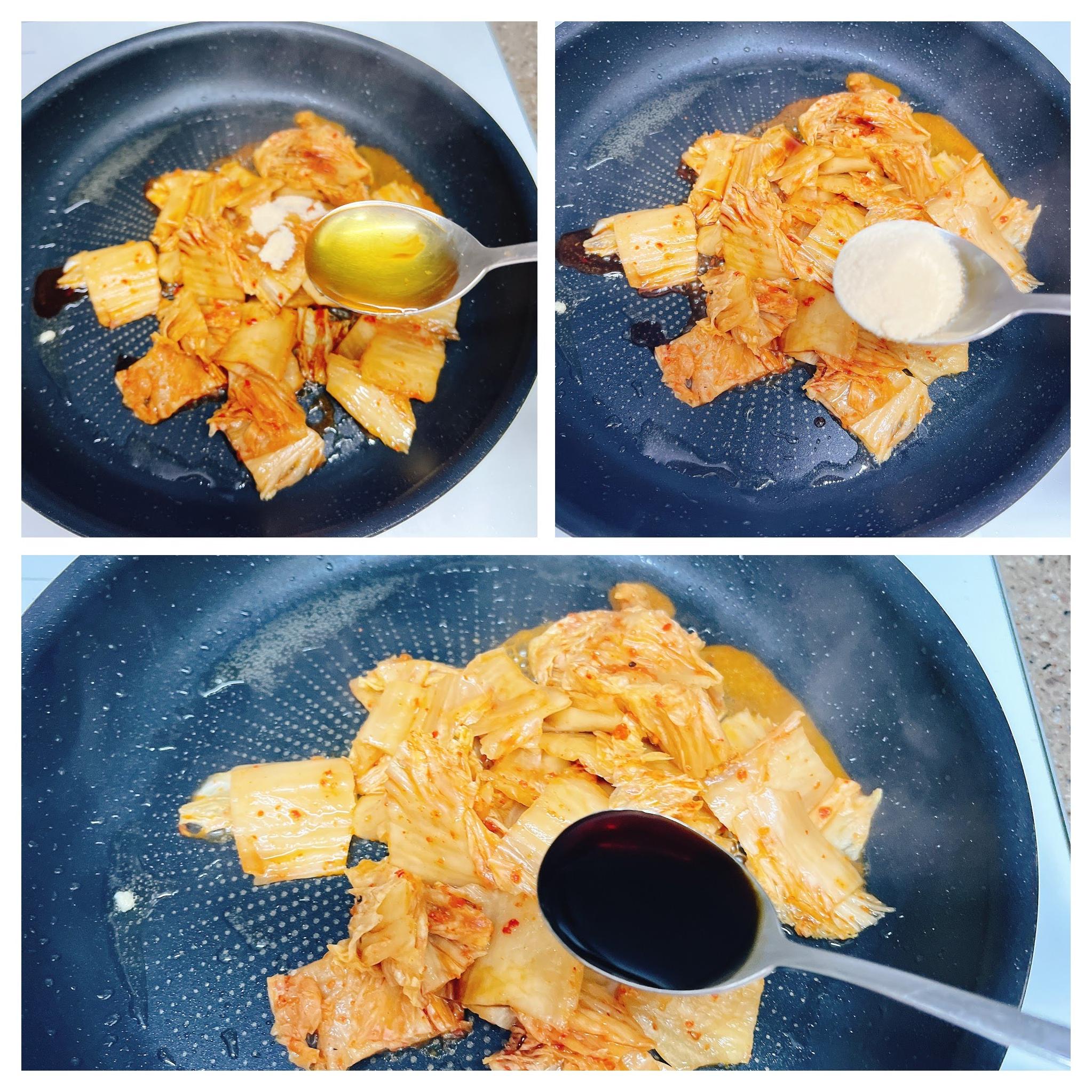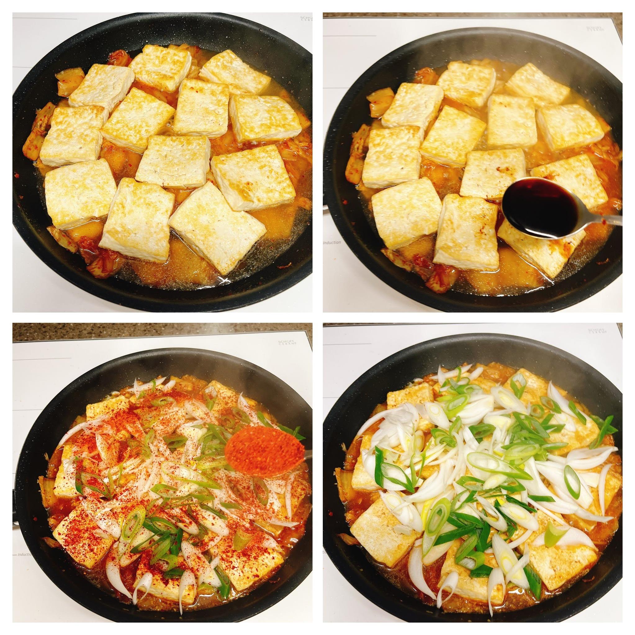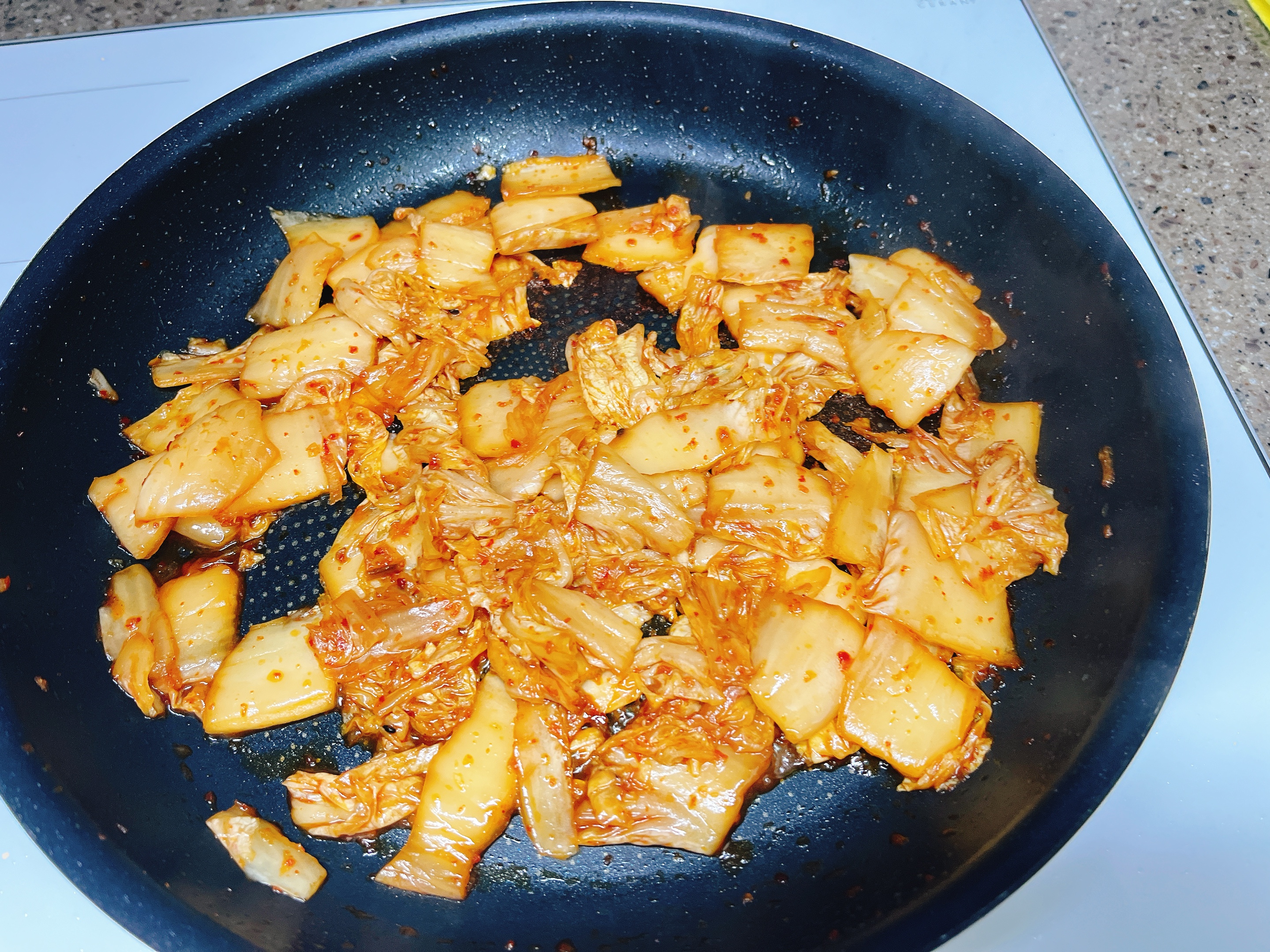 두부지진 팬에 김치를 볶아요
