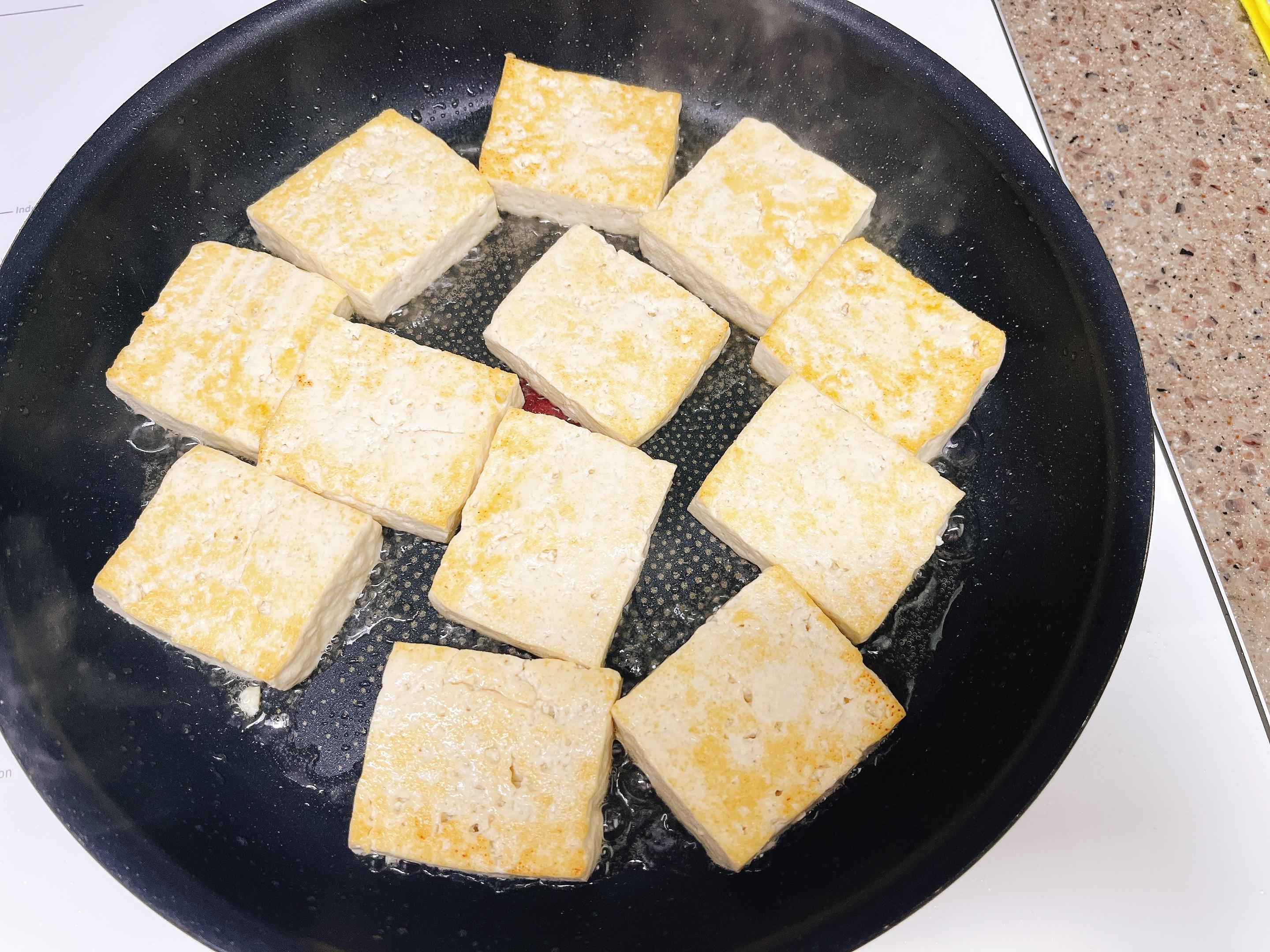 두부를 노릇하게 지져줍니다