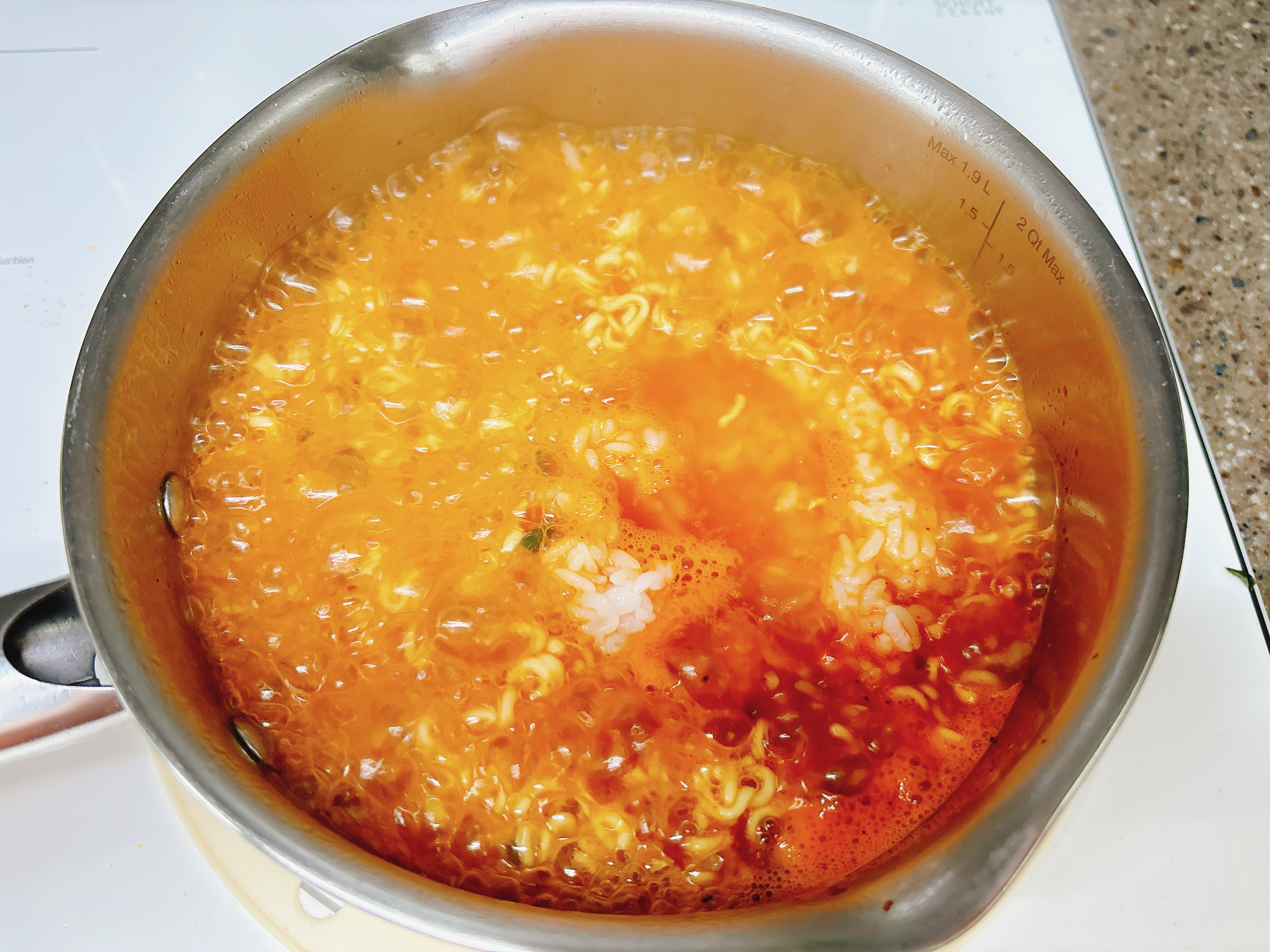라면과 밥이 퍼지게 익을때까지