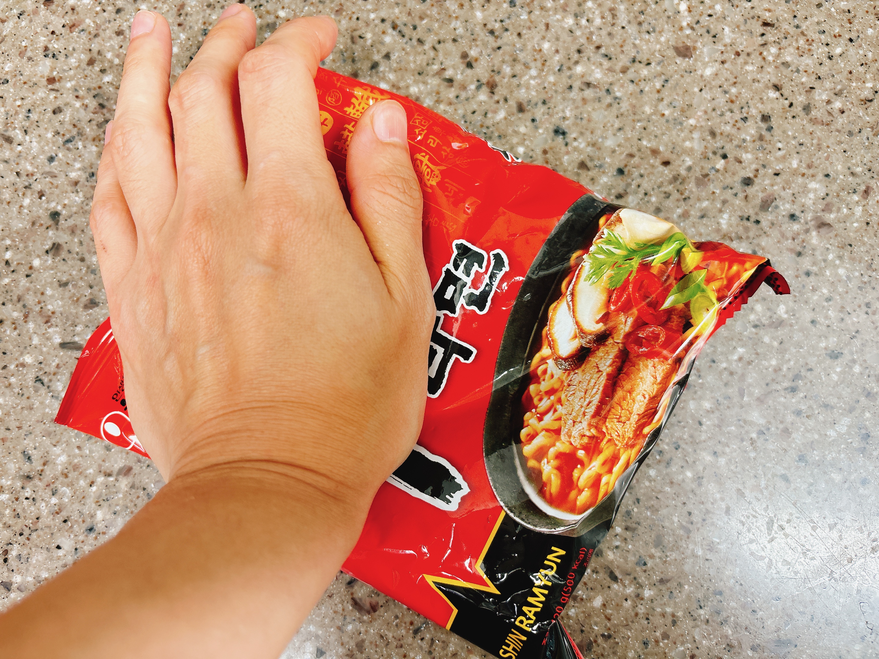 ▶ 라면을 잘게 부수기