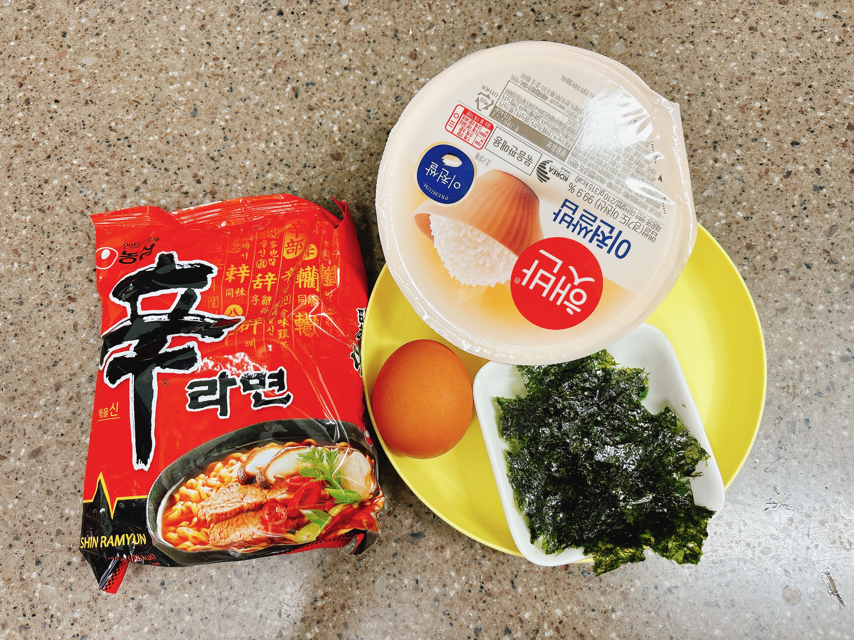 라면, 햇반, 김가루