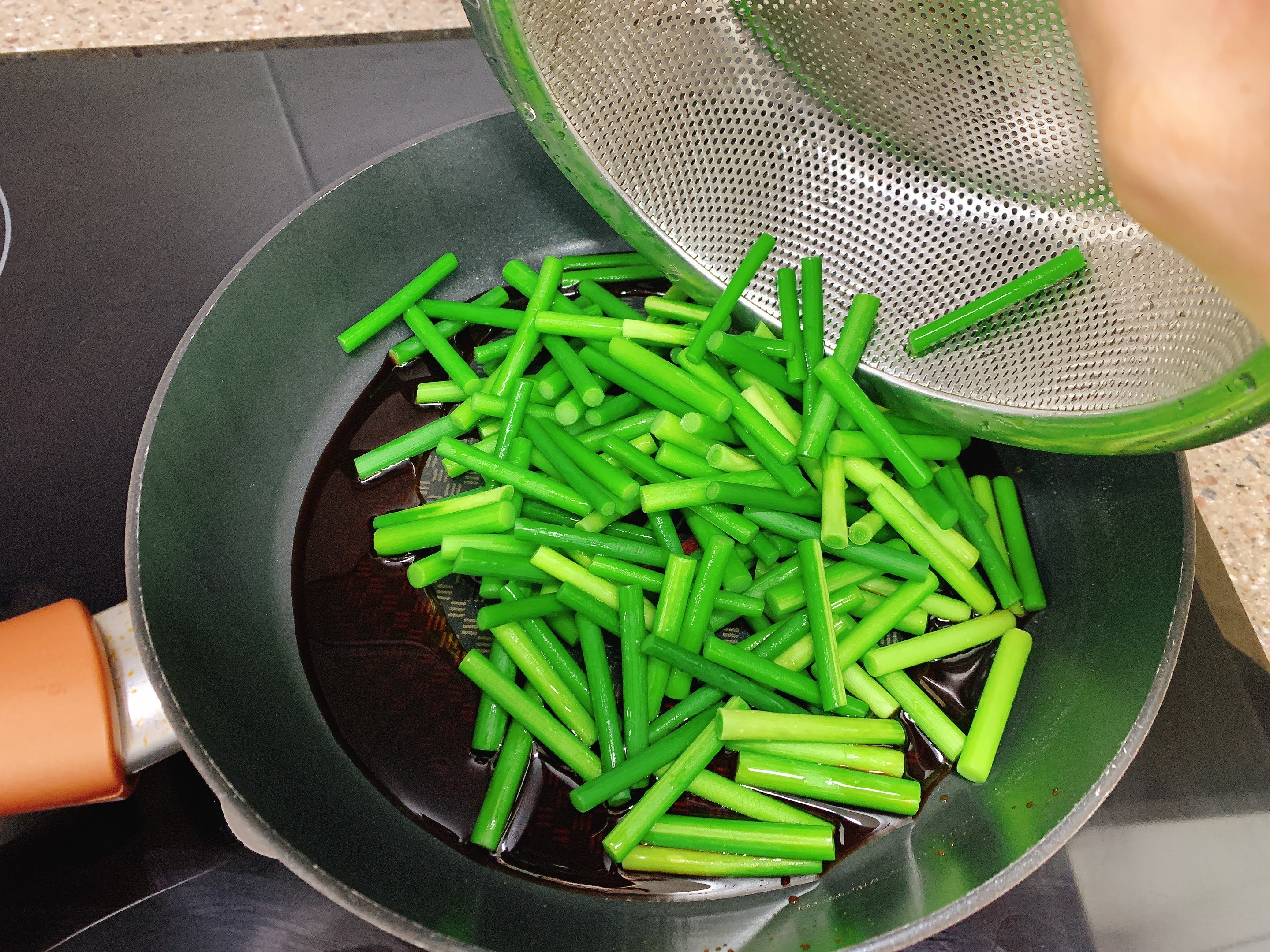 마늘종에 양념이 베여들지 않고 간장만 쫄아드니
