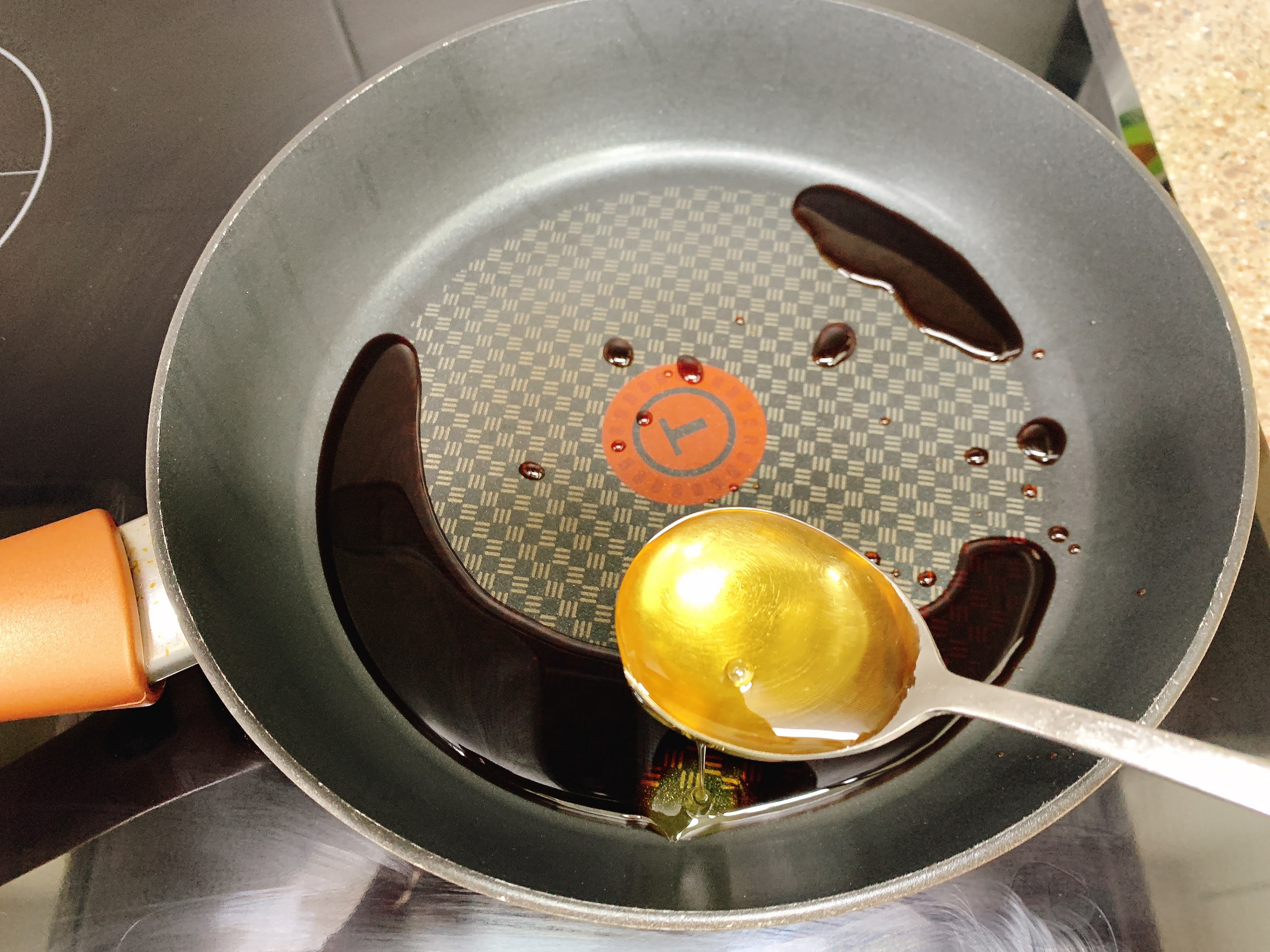 볶음팬에 진간장 3스푼과 요리당(올리고당) 1스푼