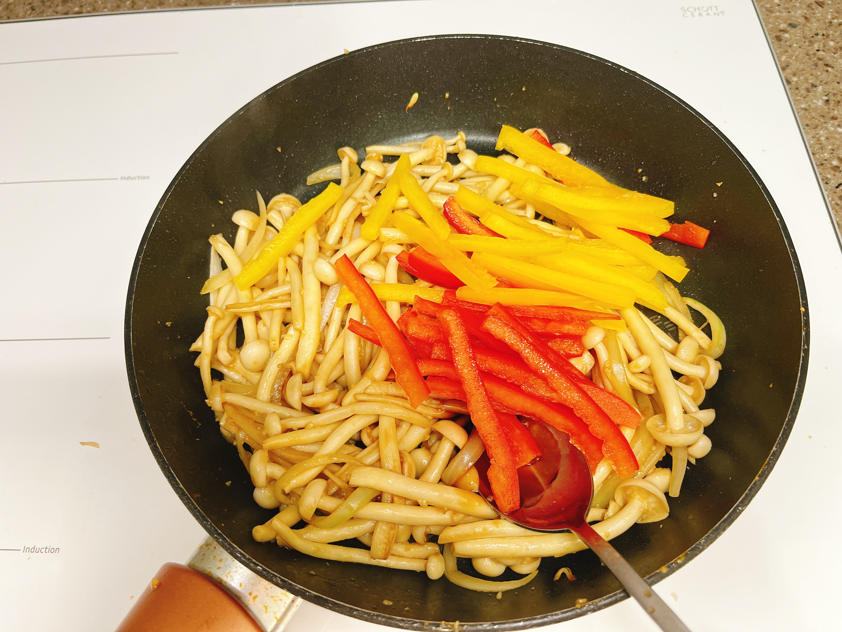 볶을 팬에 데친 만가닥버섯을 옮겨담고