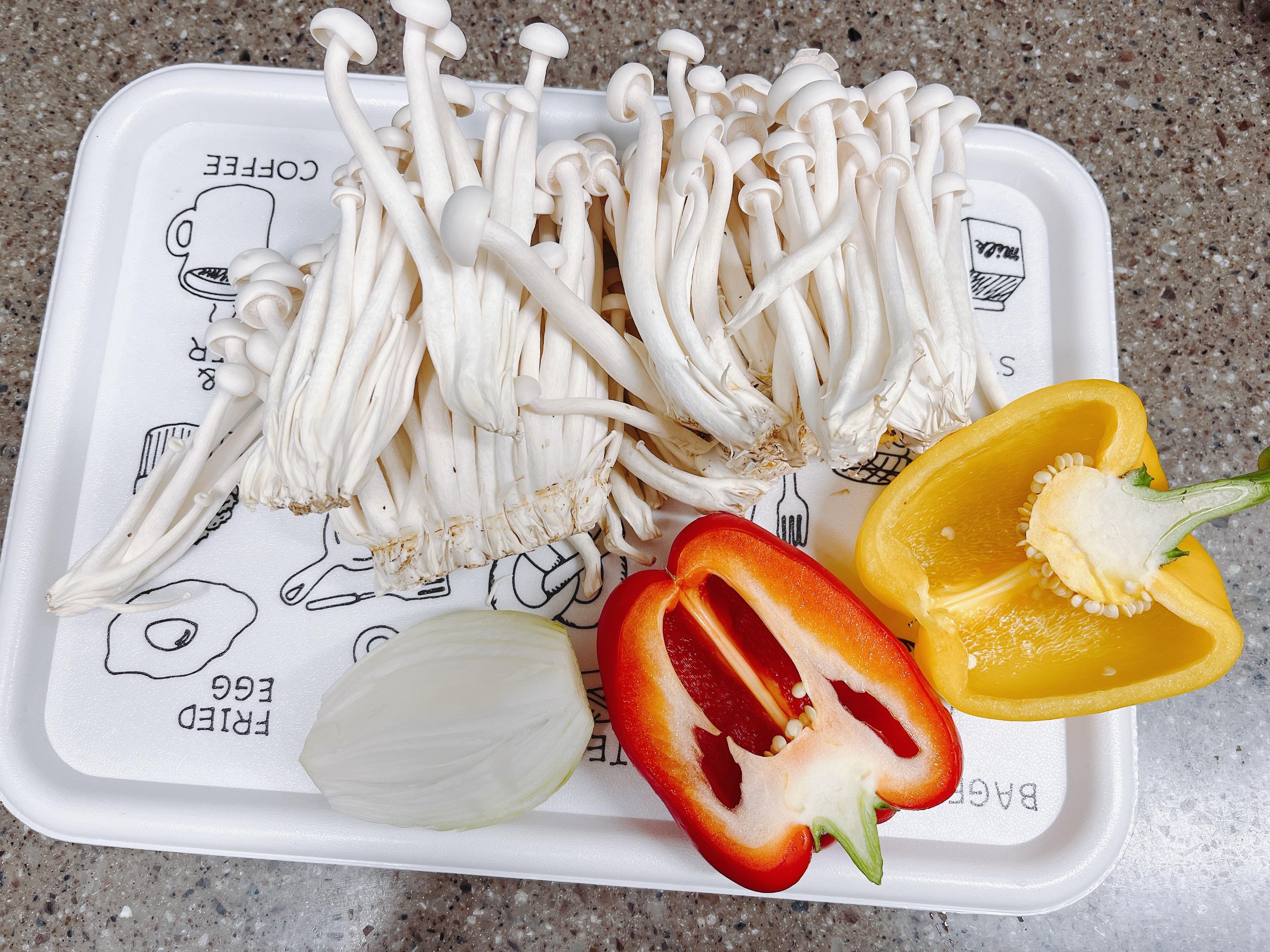 활용도가 좋아 장보러가서 무심결에 담아오게 되는 팽이버섯~ 가격도 참 착하죠ㅋ 3개에 1천에 팔기에 고민없이 사와서 팽이버섯전을 만들었어요 청양고추 넣으니 매콤해서 손이 더 가는 반찬