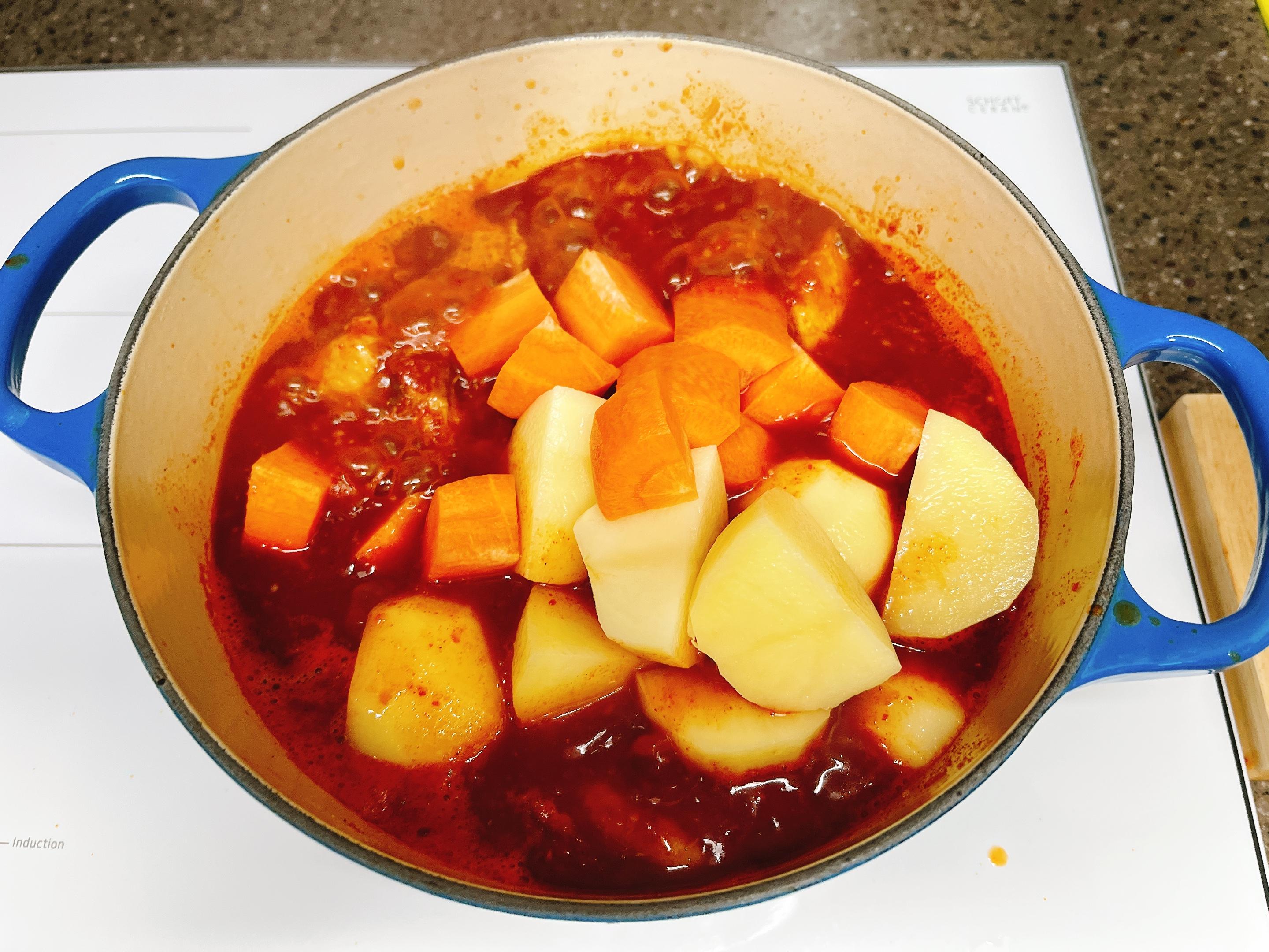 감자와 당근을 넣고~ 계속 끓여요